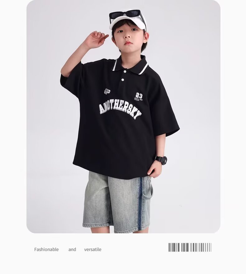 소년 여름 폴로 셔츠 스포츠 반팔 흰색 티셔츠 2025 새로운 어린이 소년 여름 편지 반팔 탑스토어 가기