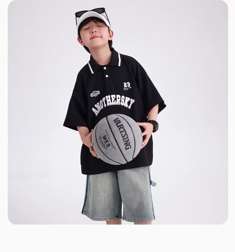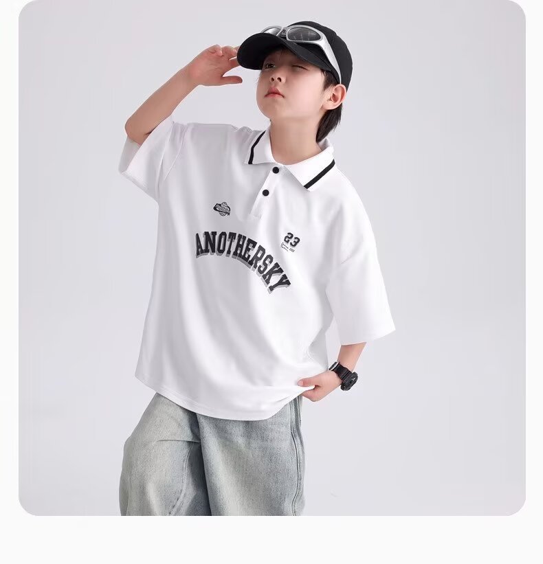 소년 여름 폴로 셔츠 스포츠 반팔 흰색 티셔츠 2025 새로운 어린이 소년 여름 편지 반팔 탑