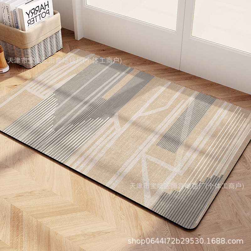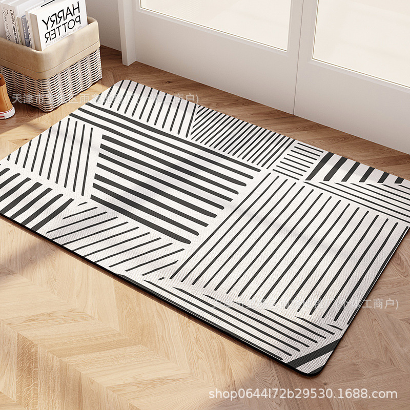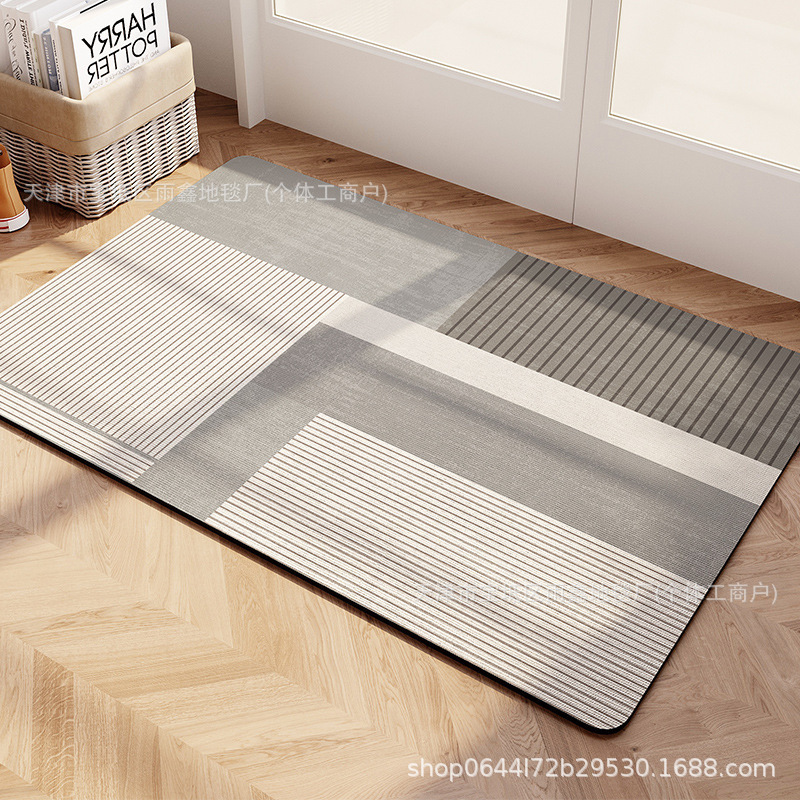 욕실 및 화장실용 심플한 라인 규조토 진흙 바닥 매트, 흡수성, 미끄럼 방지, 속건성 발 매트, 현관용 청소가 쉬운 바닥 매트