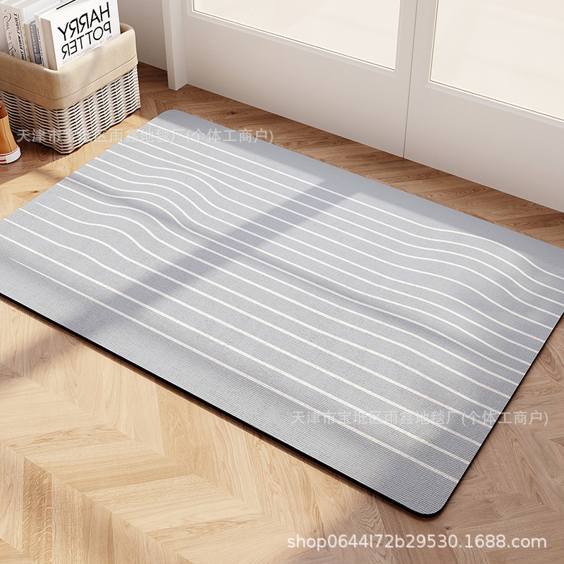 욕실 및 화장실용 심플한 라인 규조토 진흙 바닥 매트, 흡수성, 미끄럼 방지, 속건성 발 매트, 현관용 청소가 쉬운 바닥 매트스토어 가기