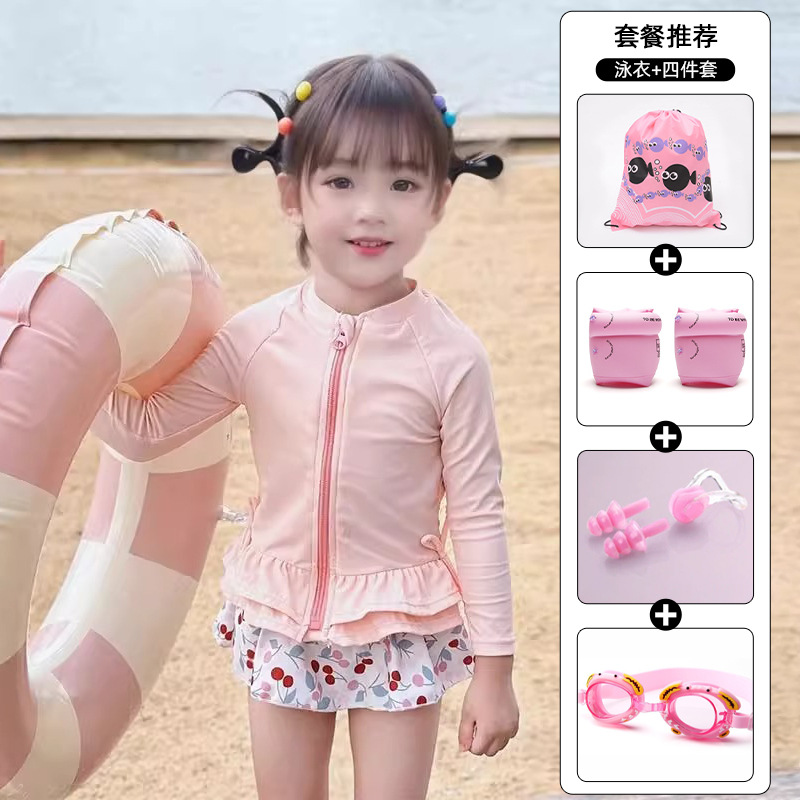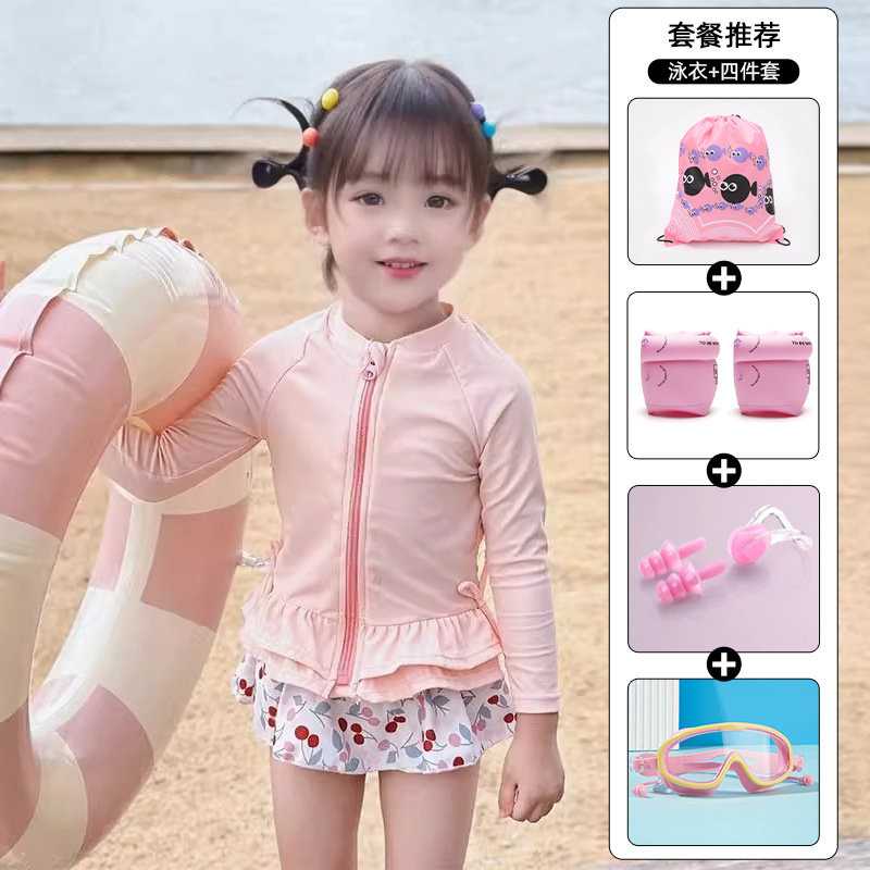 긴 소매 태양 보호 수영복 소녀 2025 소녀 귀여운 새로운 빠른 건조 어린이 원피스 수영 어린이 공주 수영복