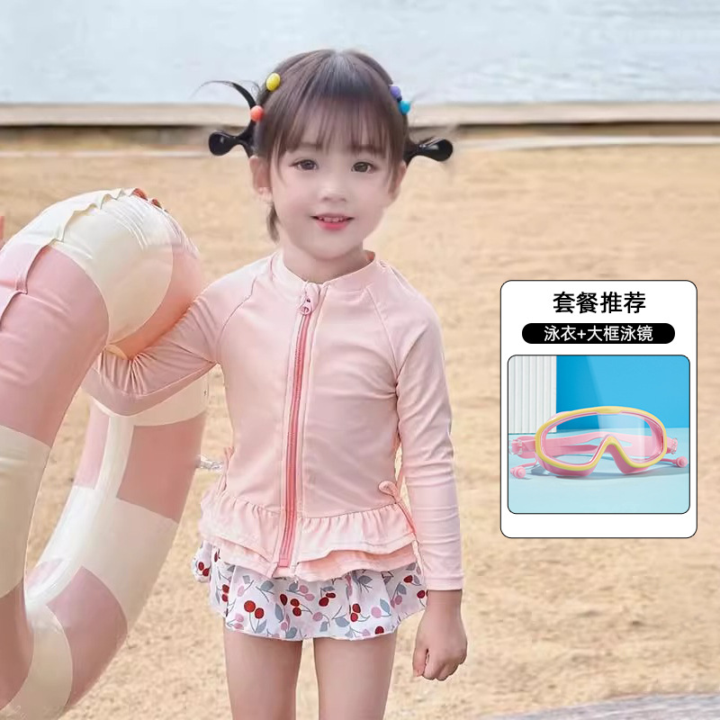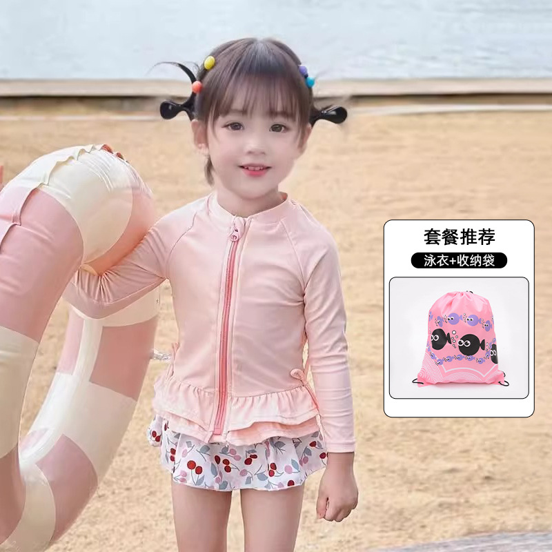 긴 소매 태양 보호 수영복 소녀 2025 소녀 귀여운 새로운 빠른 건조 어린이 원피스 수영 어린이 공주 수영복스토어 가기