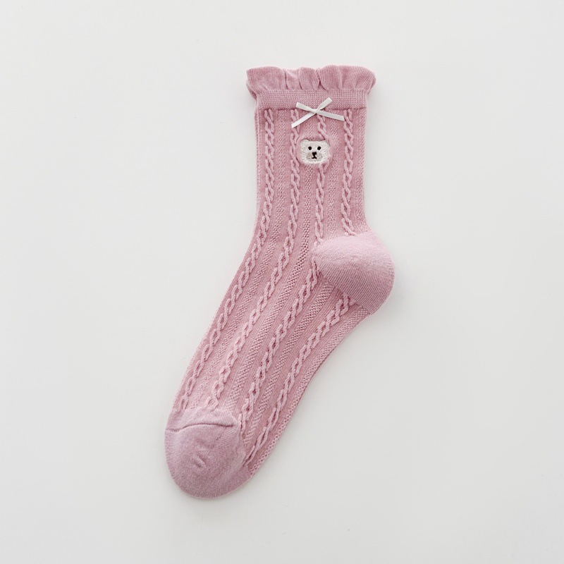 면 양말 여성의 여름 얇은 중간 길이 양말 솔리드 컬러 코튼 땀 흡수 통기성 수 놓은 강아지 레이스 양말