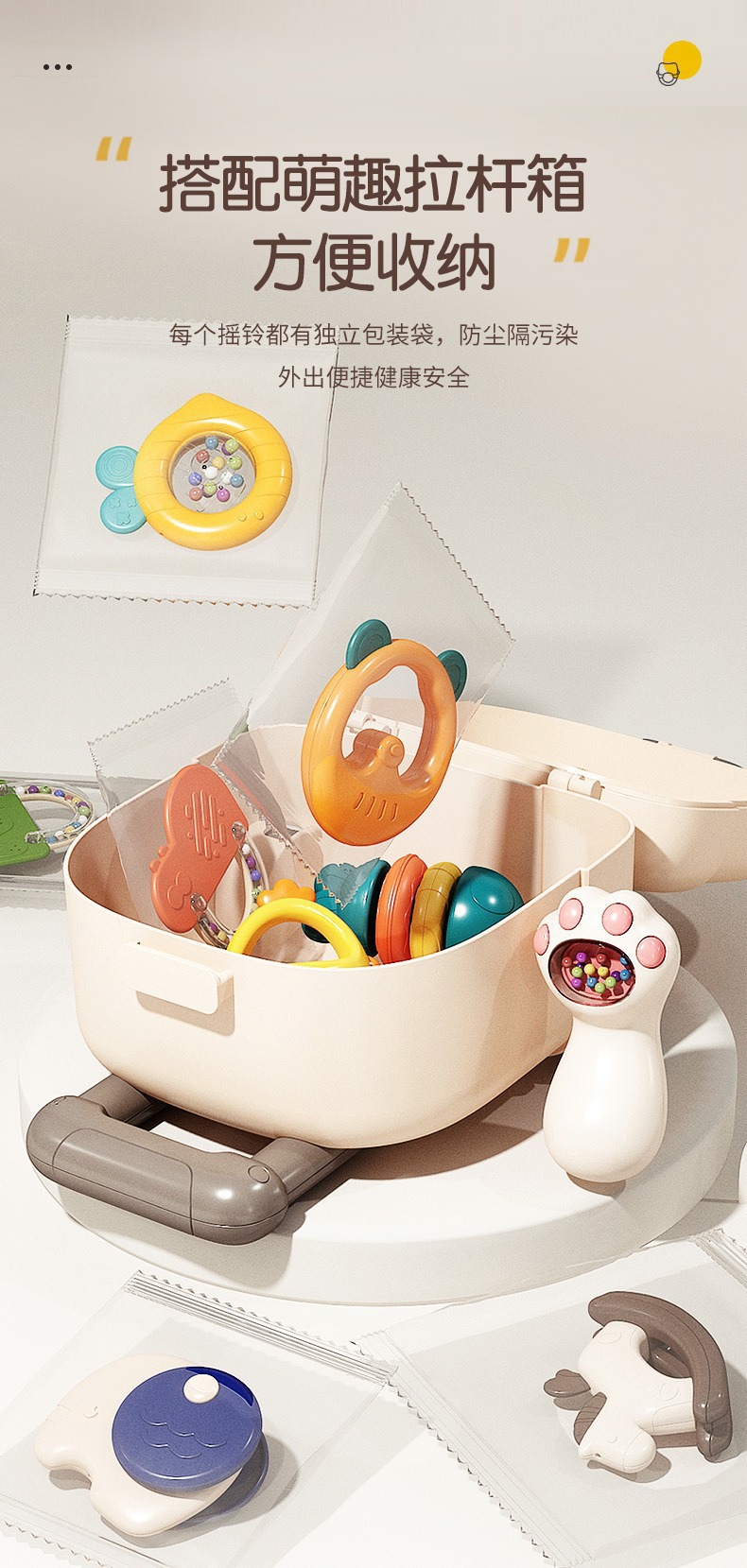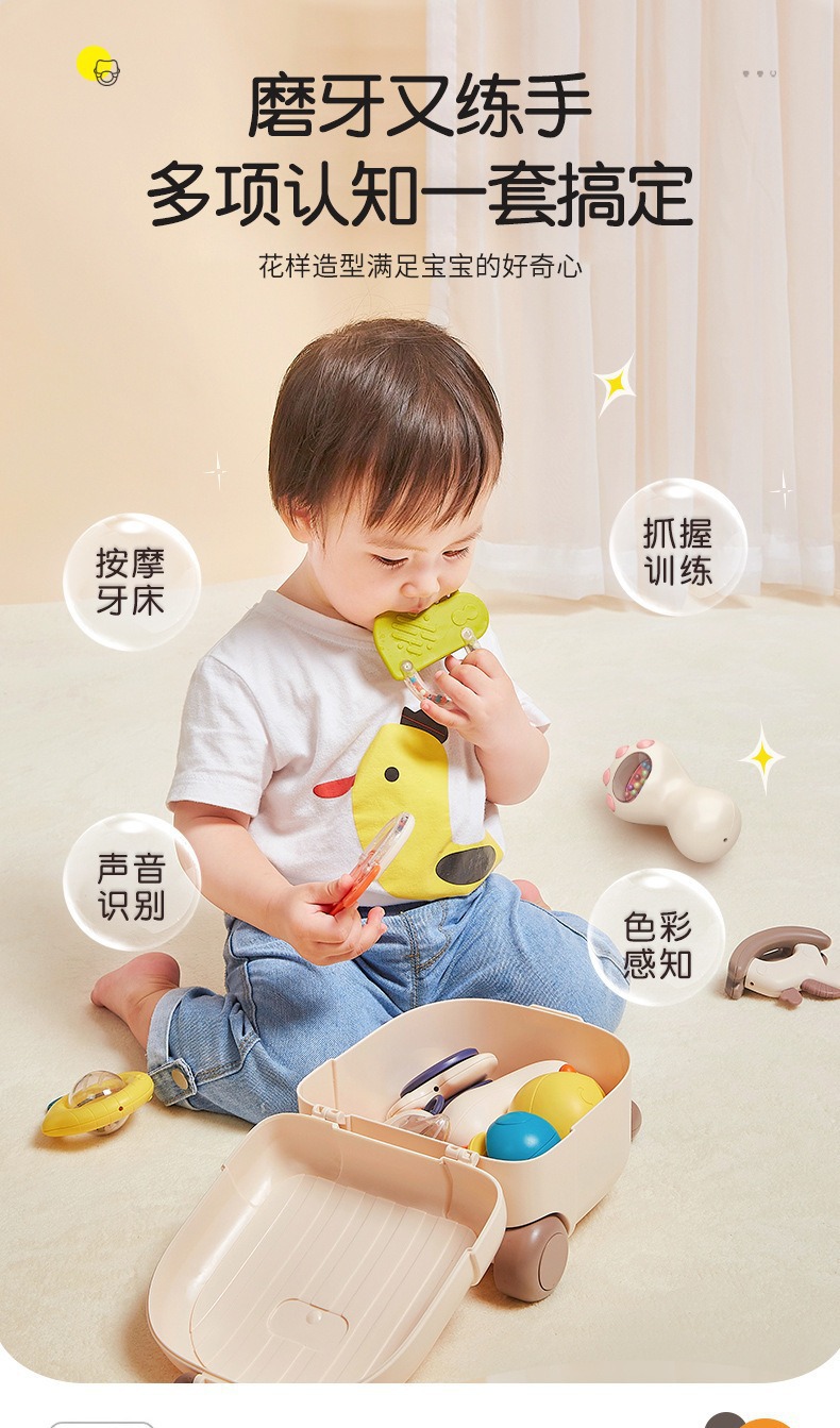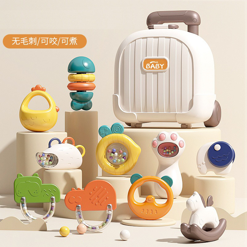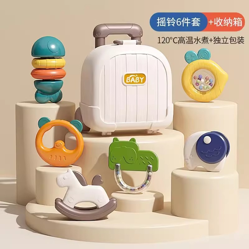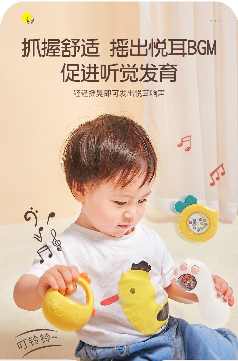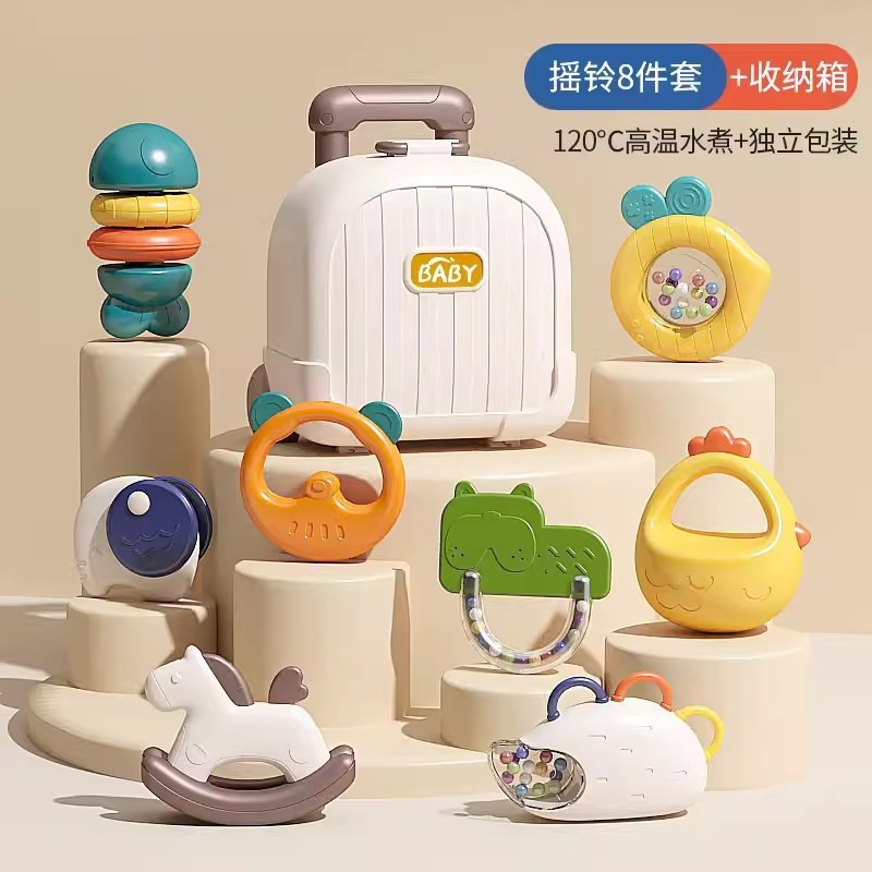 국경 간 인기 아기 손 딸랑이 장난감 0 ~ 1 세 교육 조기 교육 씹을 수있는 치아 고무 그립 손 딸랑이 도매스토어 가기