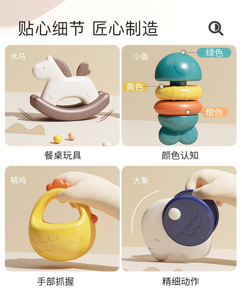 국경 간 인기 아기 손 딸랑이 장난감 0 ~ 1 세 교육 조기 교육 씹을 수있는 치아 고무 그립 손 딸랑이 도매