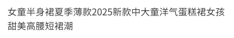 여자 스커트 여름 얇은 2025 새로운 스타일 중대형 어린이 스타일 케이크 스커트 여자 달콤한 하이 웨이스트 스커트 유행스토어 가기