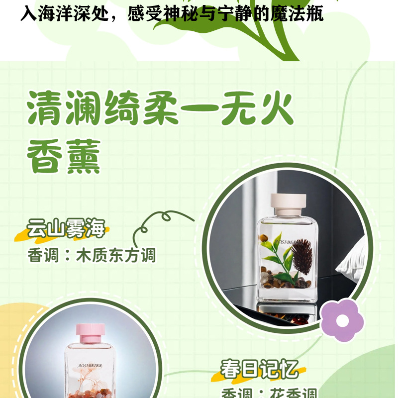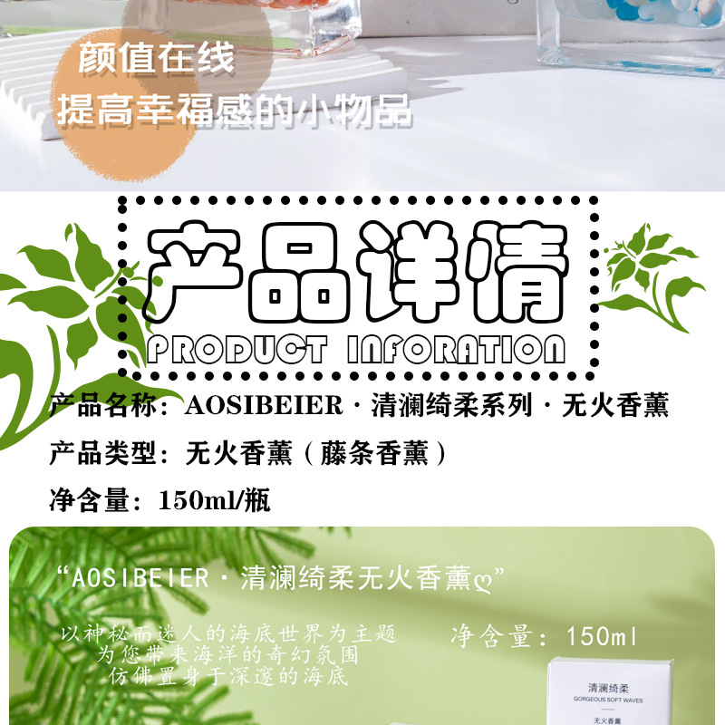 AOSIBEIR 브랜드 Qinglan Qirou 시리즈 불없는 아로마 테라피 신선하고 오래 지속되는 침실 욕실 입구 장식품스토어 가기
