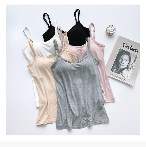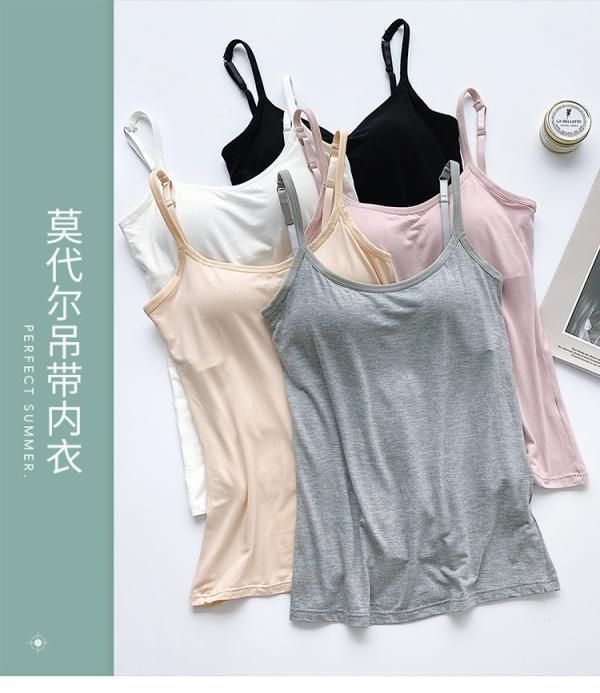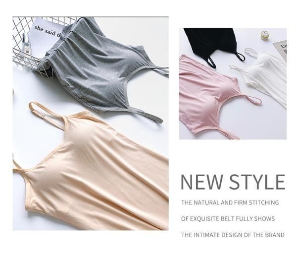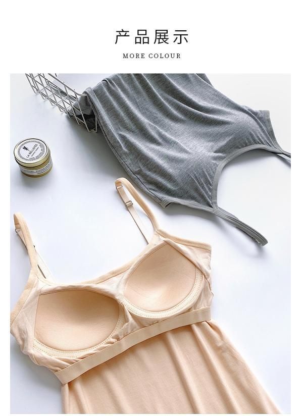 모달 소재의 가슴 패드가 내장된 여성용 올인원 슬립탑, 푸쉬업 기능, 외출복으로도 활용 가능, 노출 방지