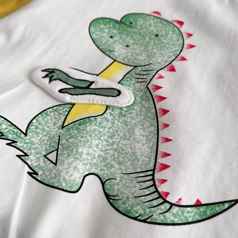 한국 스타일 여름 새로운 패션 서양식 공룡 크루 넥 반팔 소년 아기 유행 투피스 세트 어린 소년을위한 아동복