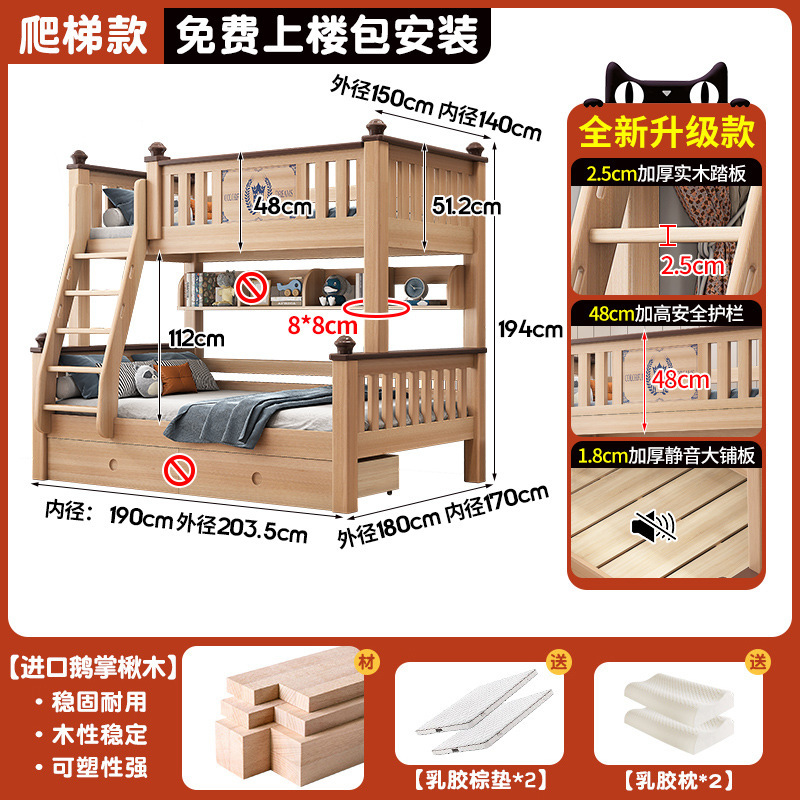 • 사다리 + 더블 서랍 + 매트리스 * 2 [상단 150, 하단 180] [1.8*30cm 넓고 두꺼운 침대판]