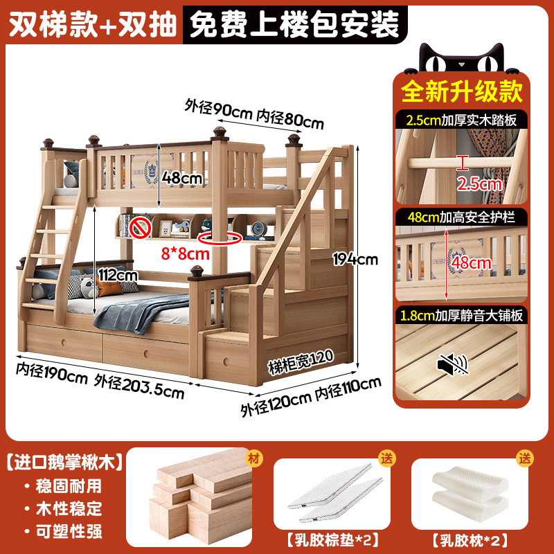 • 더블 사다리 + 더블 서랍 + 매트리스*2 [상단 90, 하단 120] [상하 분할하여 몇 초 만에 두 개의 침대로 변환]
