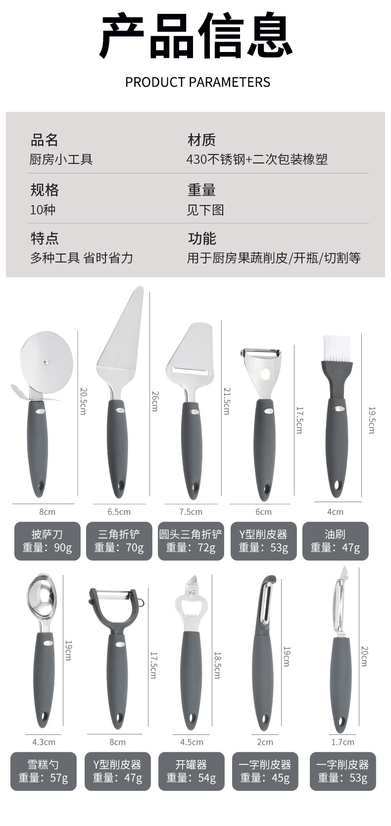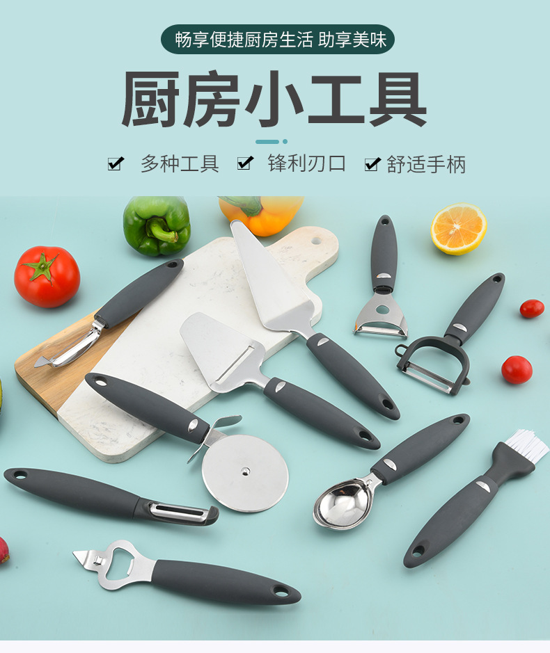 공장 직접 판매 스테인레스 스틸 주방 도구 세트 캔 오프너 피자 커터 계란 비터 필러 주방 용품 멀티 피스 세트스토어 가기