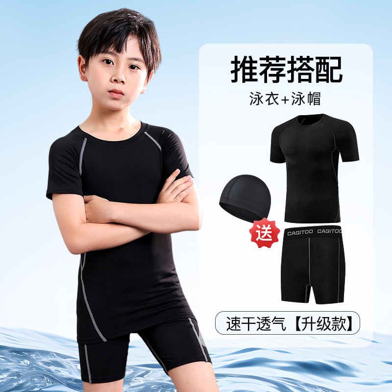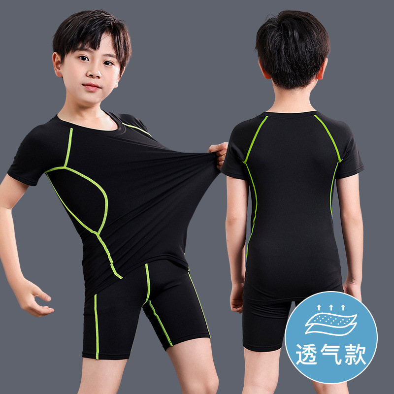 수영 전문 훈련, 큰 어린이 수영 스플릿 슈트, 속건성 온천 반바지, 소년 반팔 자외선 차단 슈트
