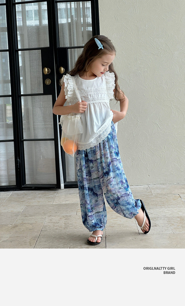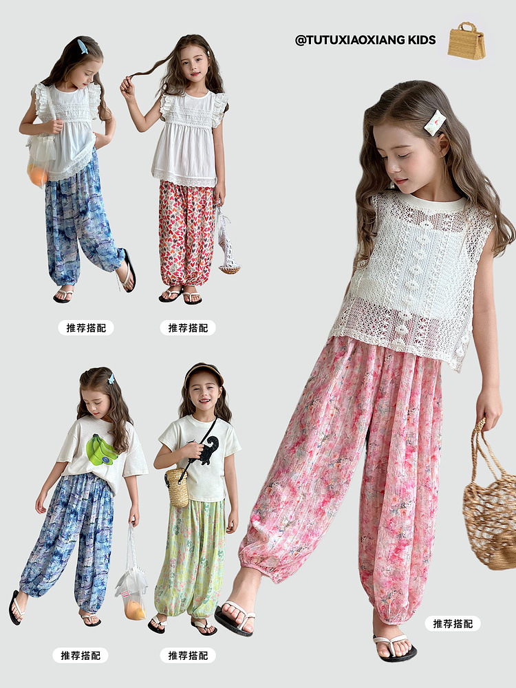 투투 코끼리 소녀 캐주얼 바지 2025 여름 새 아동복 꽃 방지 모기 바지 어린이 얇은 통기성 바지스토어 가기
