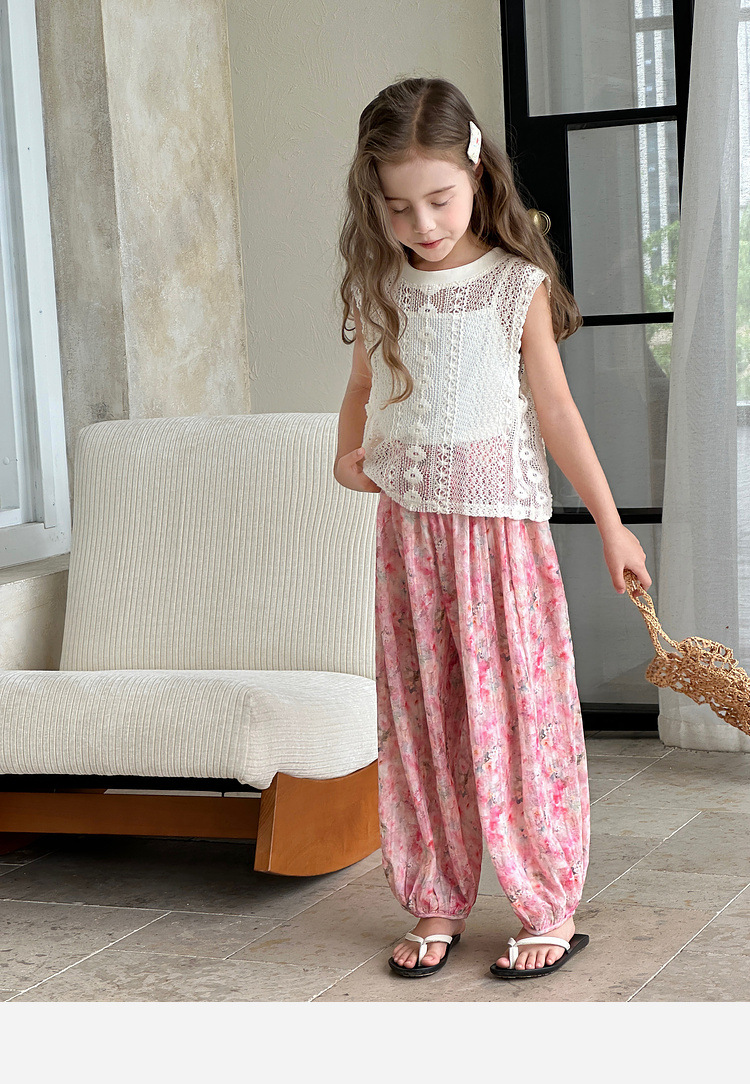 투투 코끼리 소녀 캐주얼 바지 2025 여름 새 아동복 꽃 방지 모기 바지 어린이 얇은 통기성 바지