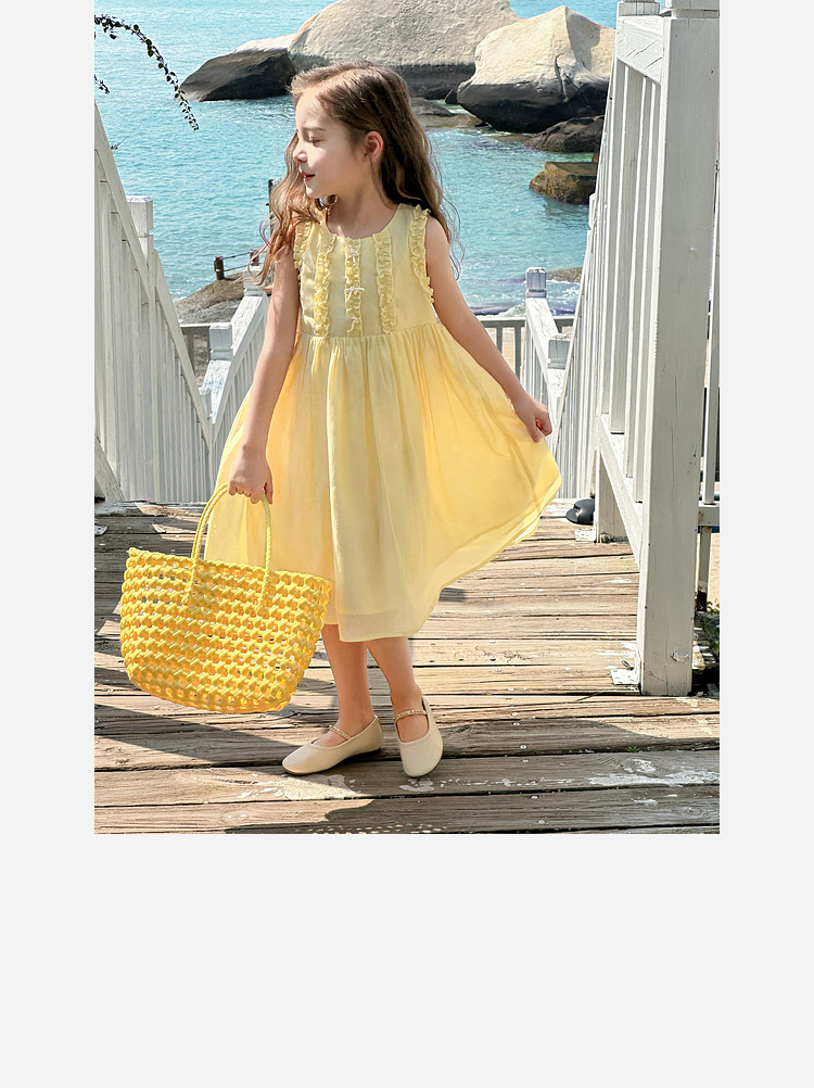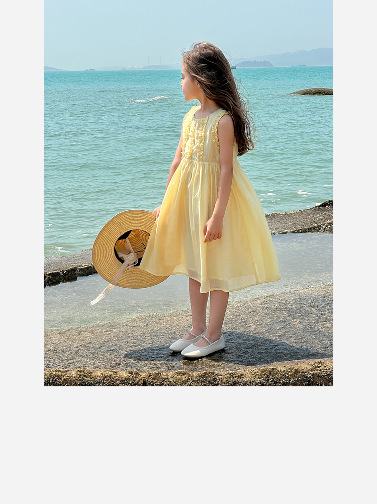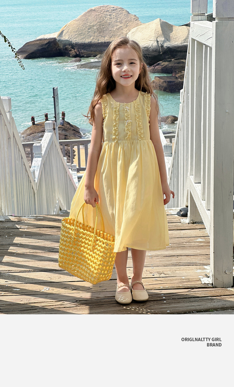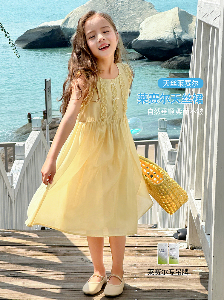 투투 코끼리 소녀 2025 여름 새로운 스타일 신선한 아트 텐셀 원피스 휴일 스타일 작은 소녀 공주 원피스스토어 가기