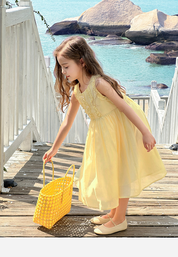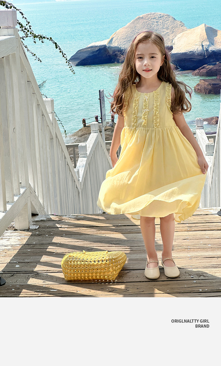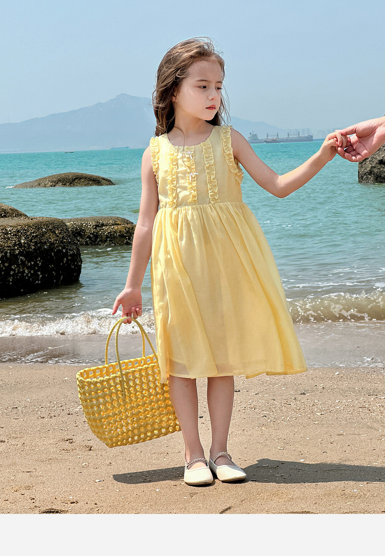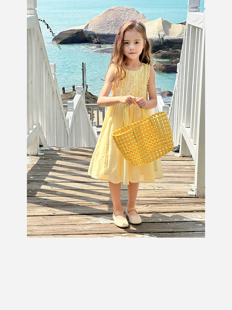 투투 코끼리 소녀 2025 여름 새로운 스타일 신선한 아트 텐셀 원피스 휴일 스타일 작은 소녀 공주 원피스스토어 가기