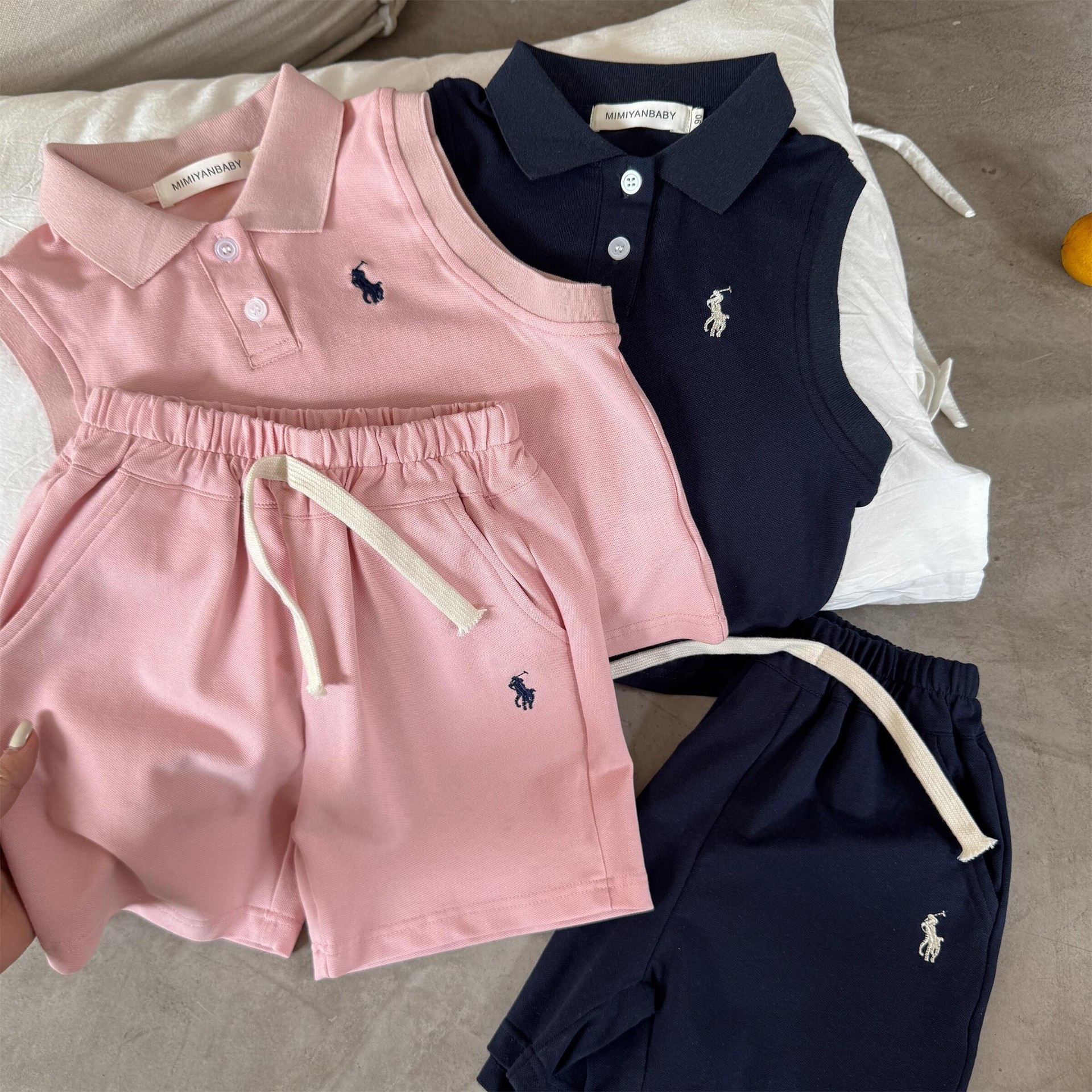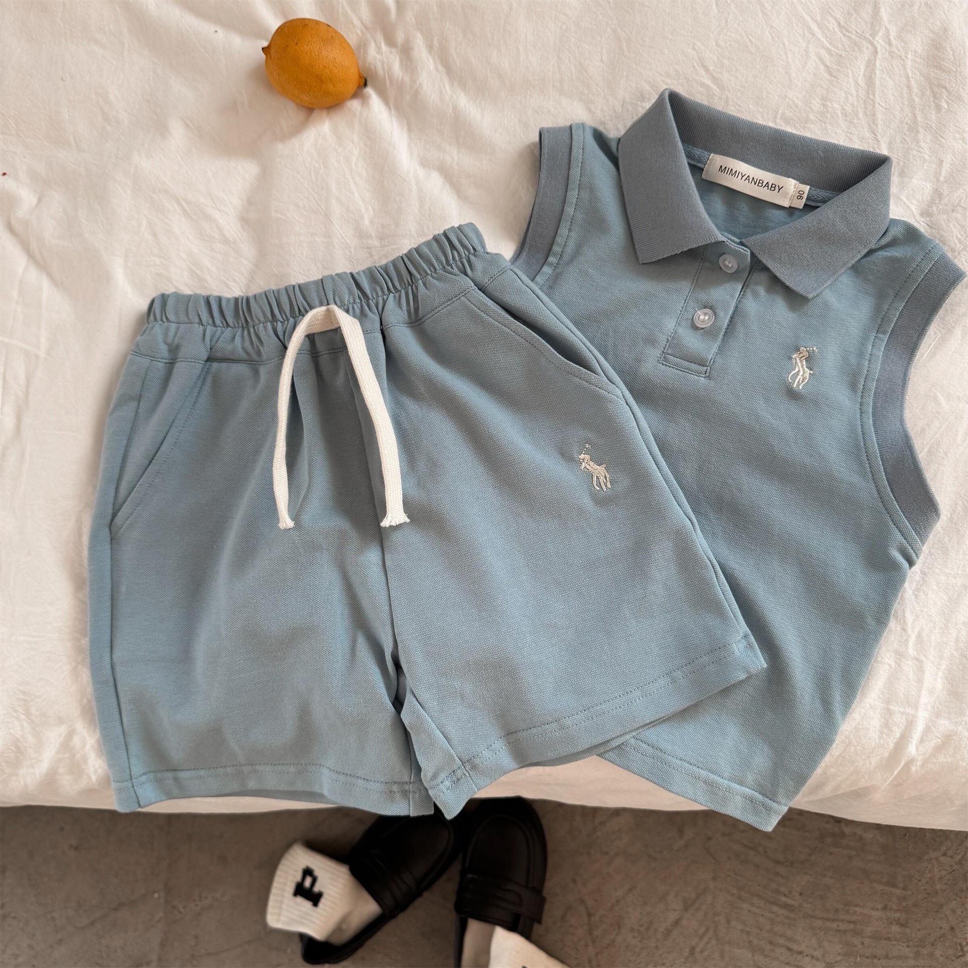 어린이 세트 2025 여름 소년과 소녀 일본 조랑말 조끼 폴로 아기 어린이 스포츠 및 레저 투피스 세트