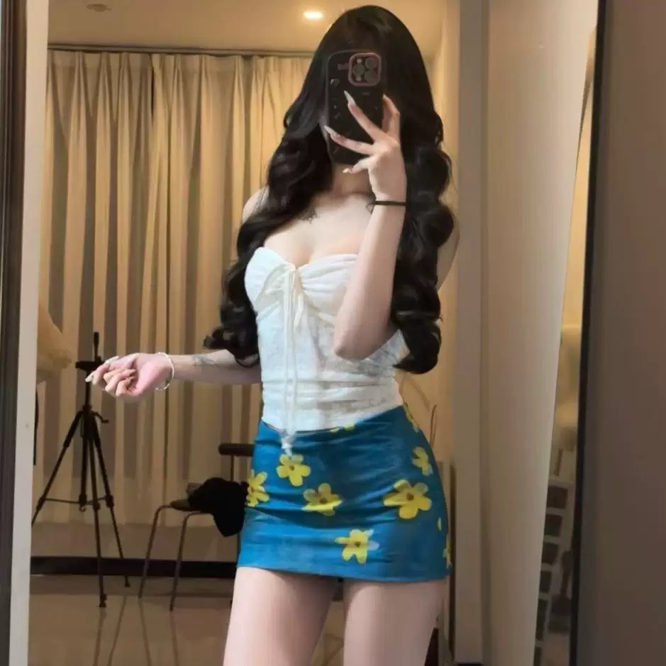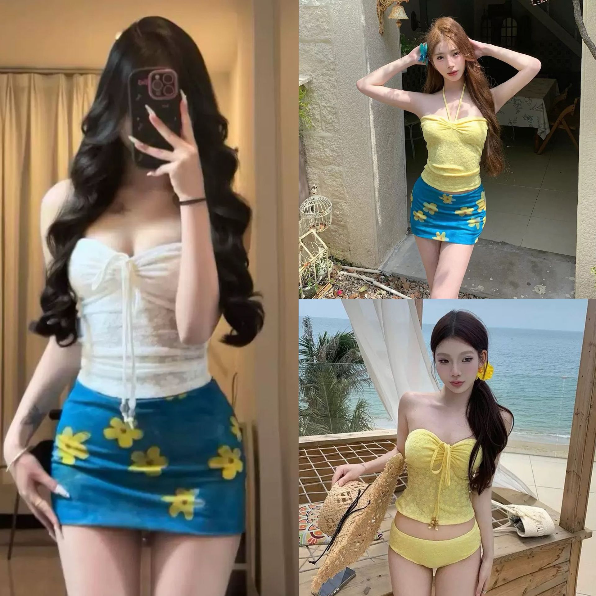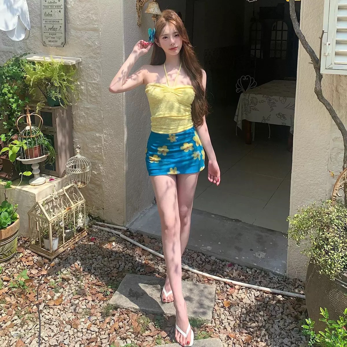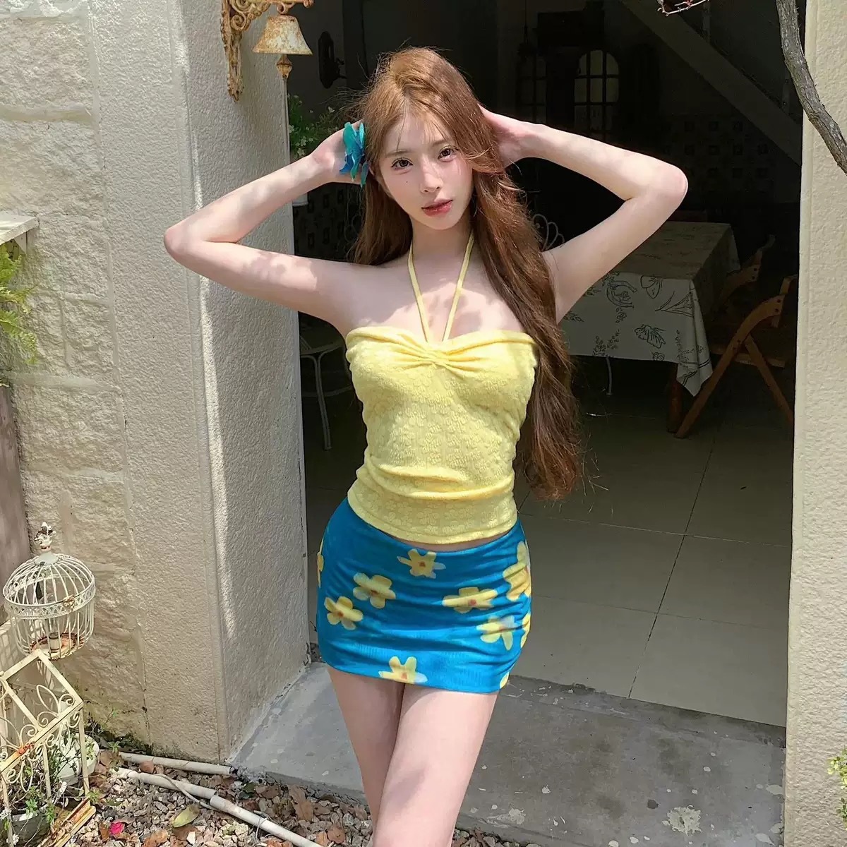 프랑스 달콤한 도파민 Halter Camisole 여성용 여름복 해변 휴가 비키니 수영복