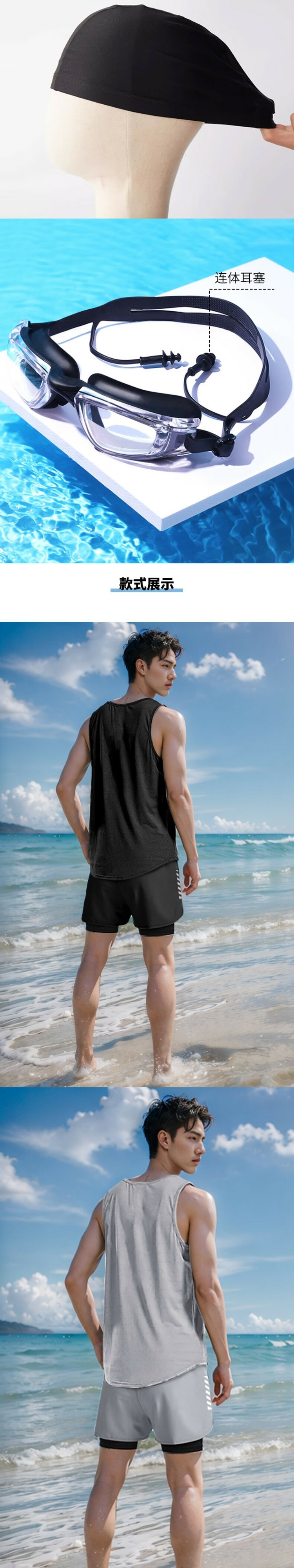 • 그레이 조끼 4종 세트(수영모+수영고글)