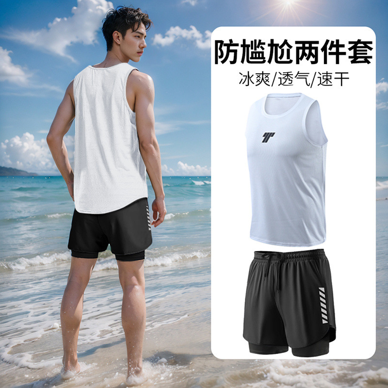 • 흰색 조끼 + 검정색 수영 트렁크