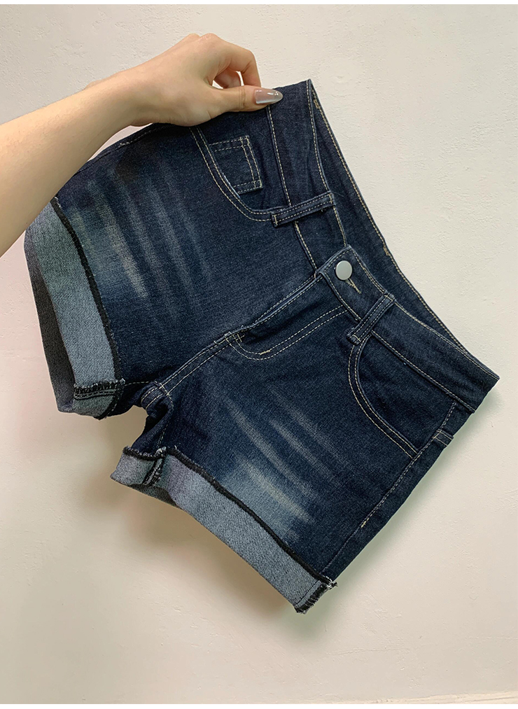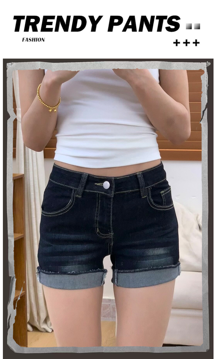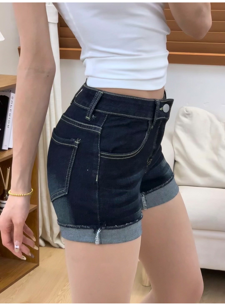 아메리칸 스타일 다크 블루 데님 반바지 여성 2025 년 여름 새로운 높은 허리 슬리밍 핫 팬츠 핫 엉덩이 A 자형 엉덩이스토어 가기