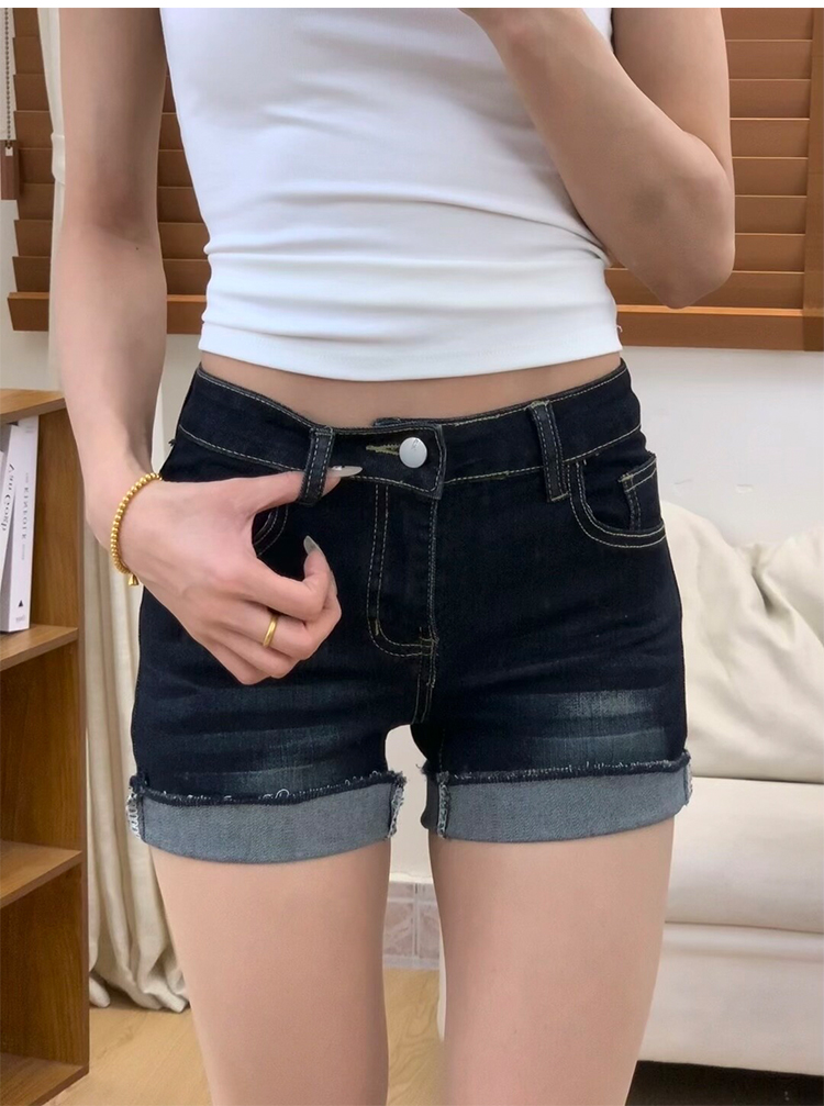 아메리칸 스타일 다크 블루 데님 반바지 여성 2025 년 여름 새로운 높은 허리 슬리밍 핫 팬츠 핫 엉덩이 A 자형 엉덩이