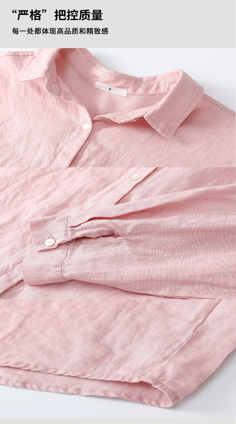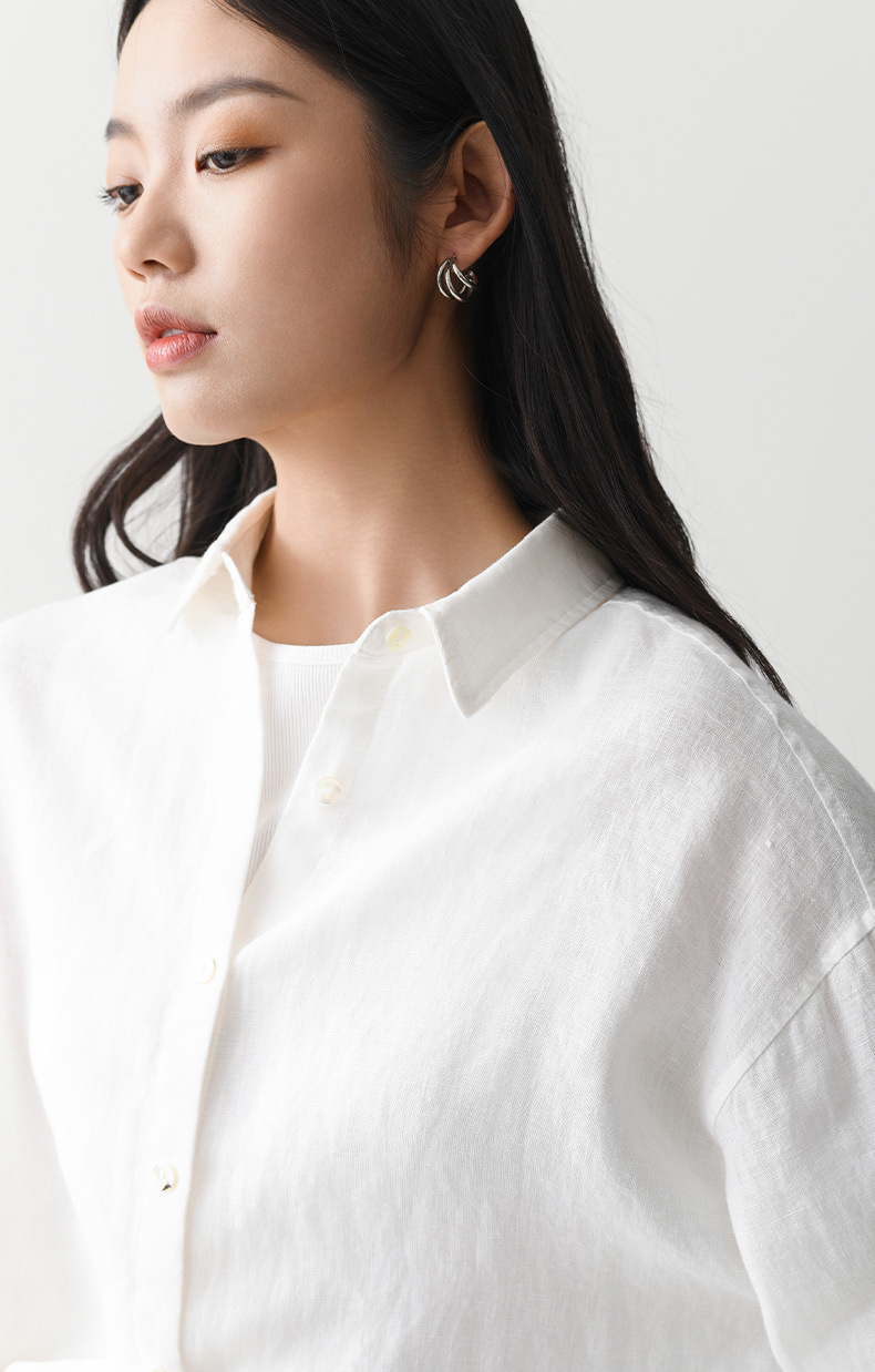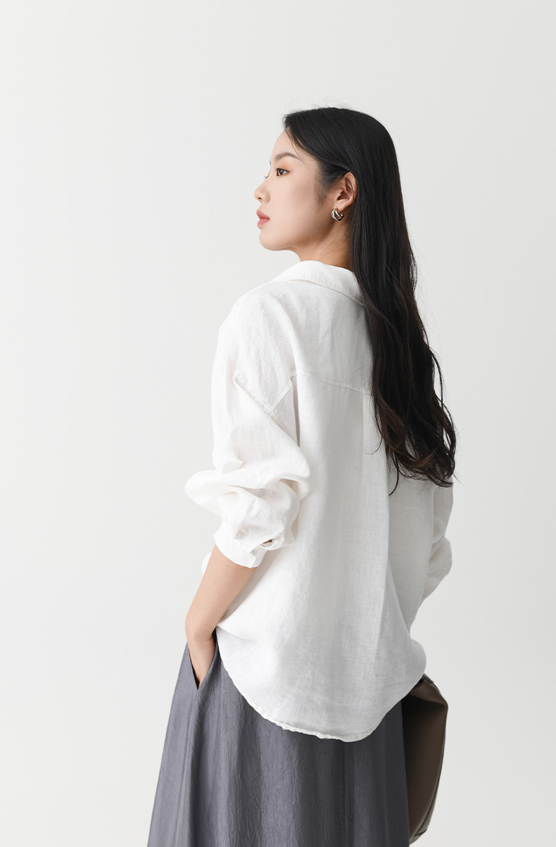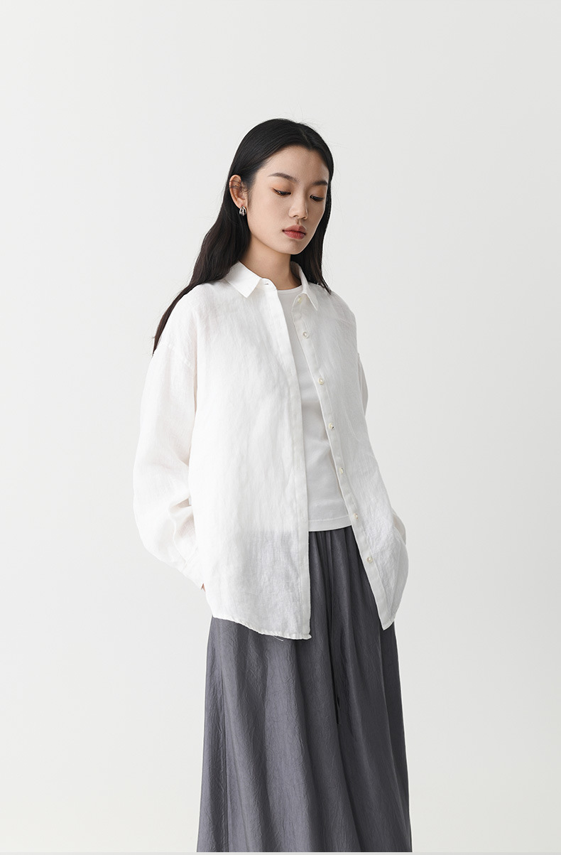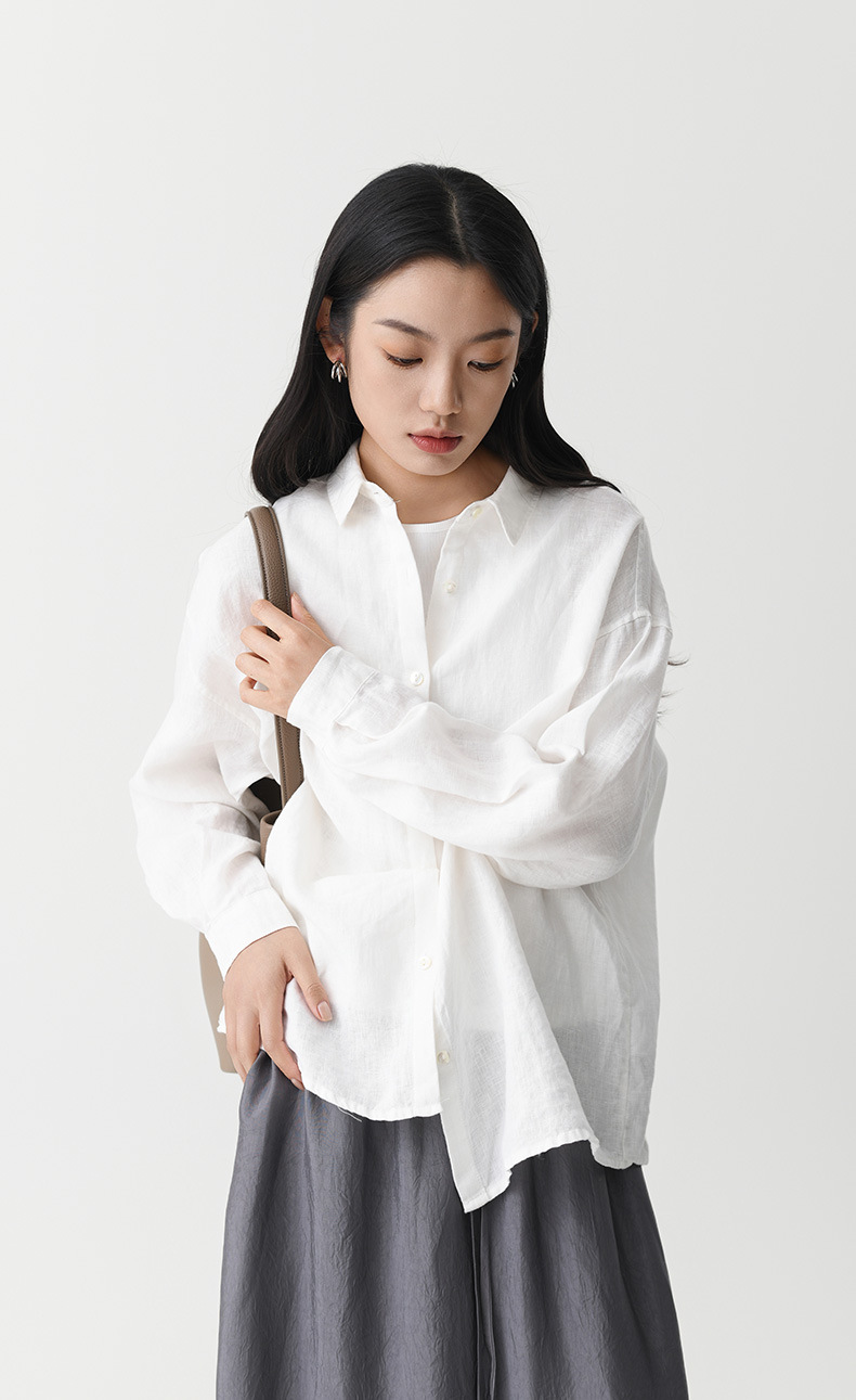 여성 여름 화이트 올드 머니 스타일 100 리넨 셔츠 작은 높은 감각 긴 소매 슬림 캐주얼 코트 탑스토어 가기