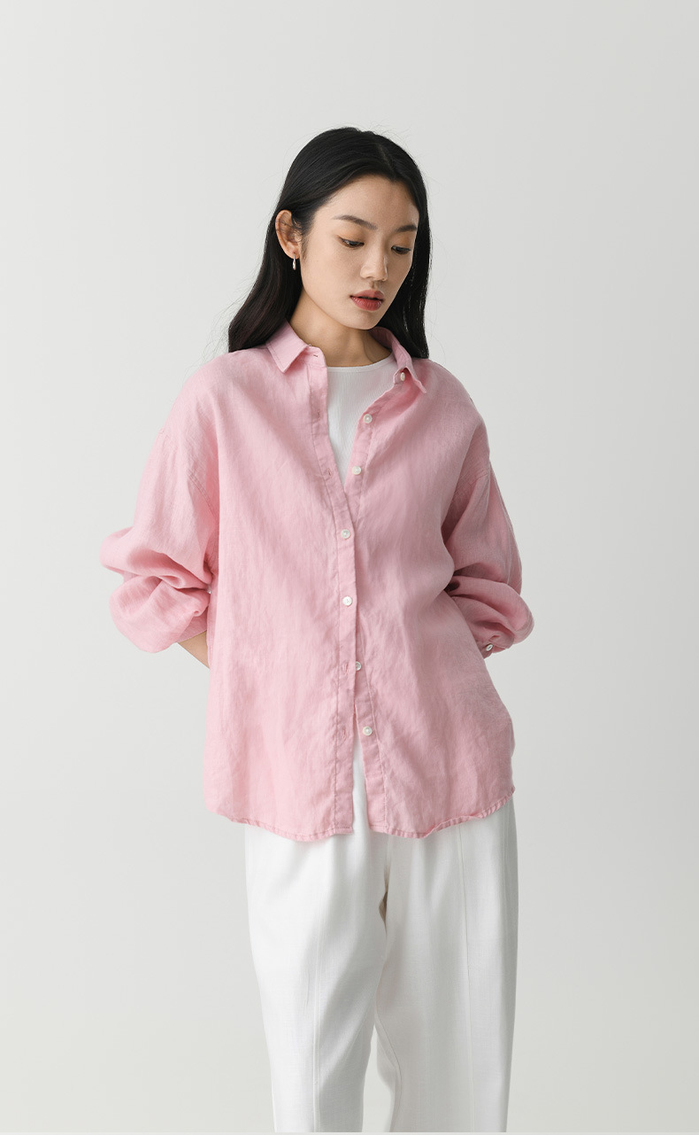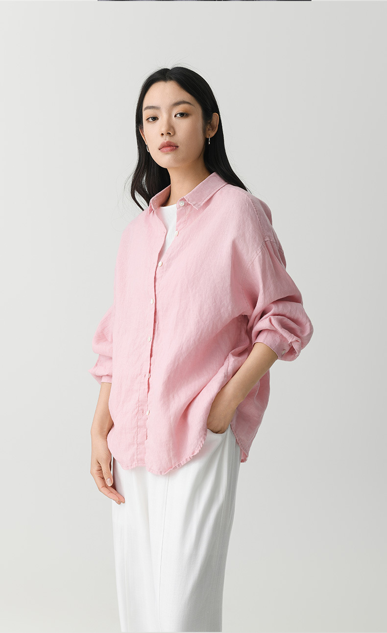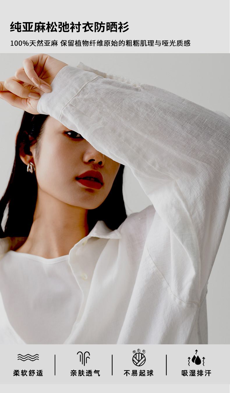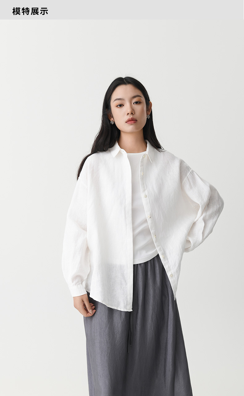 여성 여름 화이트 올드 머니 스타일 100 리넨 셔츠 작은 높은 감각 긴 소매 슬림 캐주얼 코트 탑스토어 가기