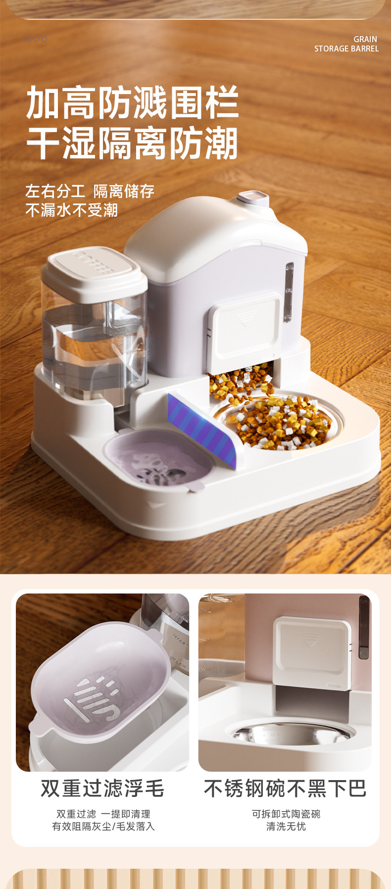 • 피치 핑크 + 스테인리스 그릇 [곡물 조절 가능, 청소 용이]