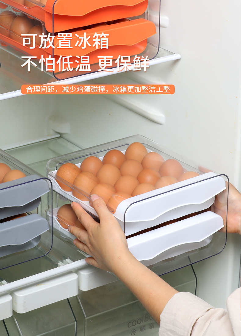 냉장고 계란 보관 상자 PET 투명 32 그리드 더블 레이어 서랍 형 흙 계란 상자 크리스퍼 주방 계란 상자