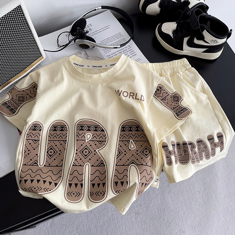 소년 반팔 티셔츠 정장 잘 생긴 여름 2025 새로운 스타일 3 아동복 아기 스포츠 여름 옷 서양식 투피스 세트스토어 가기
