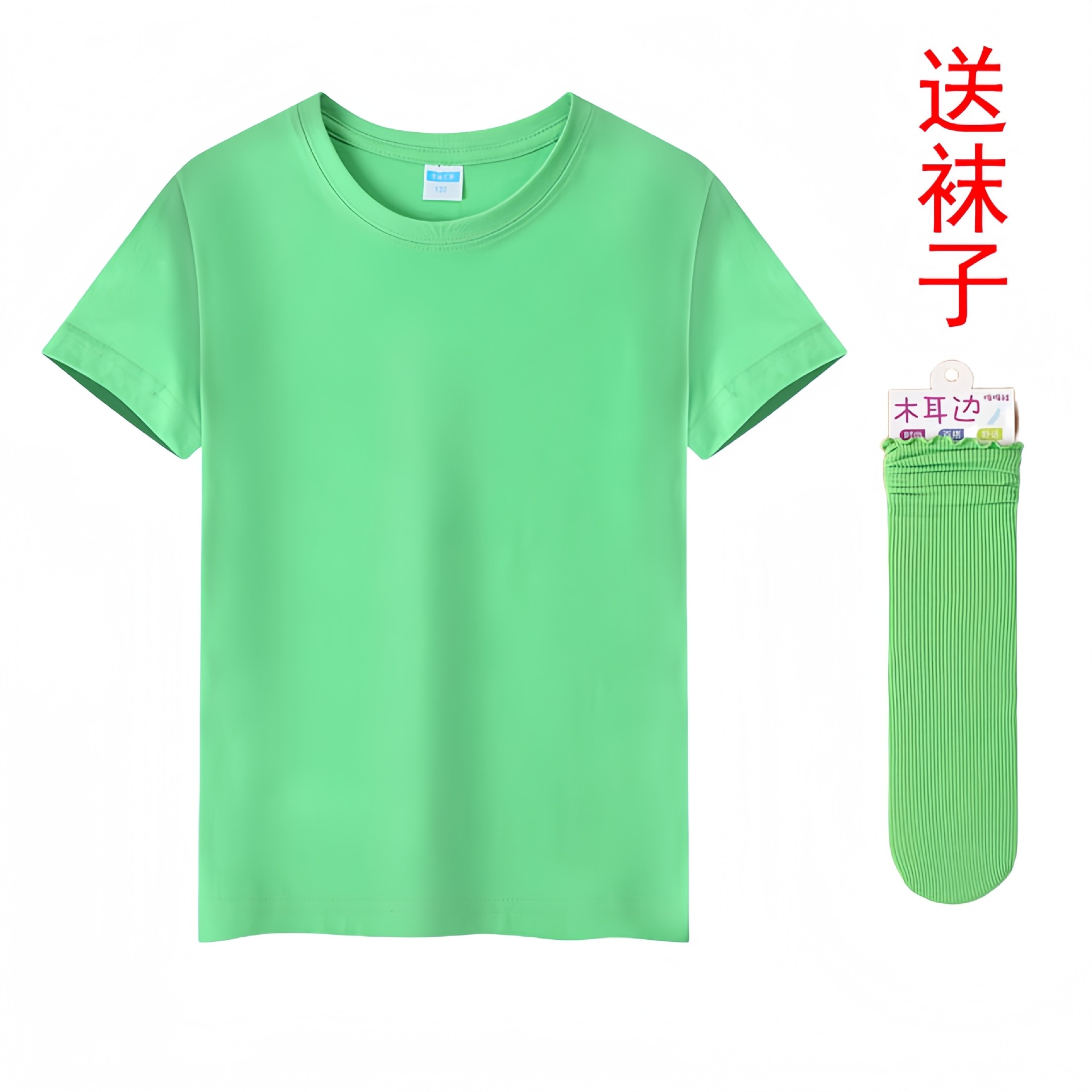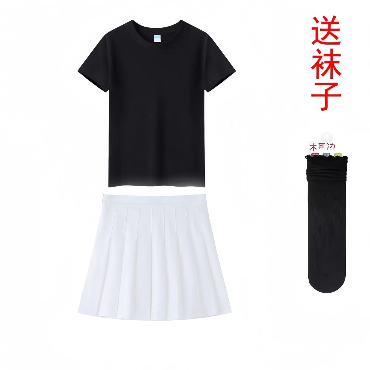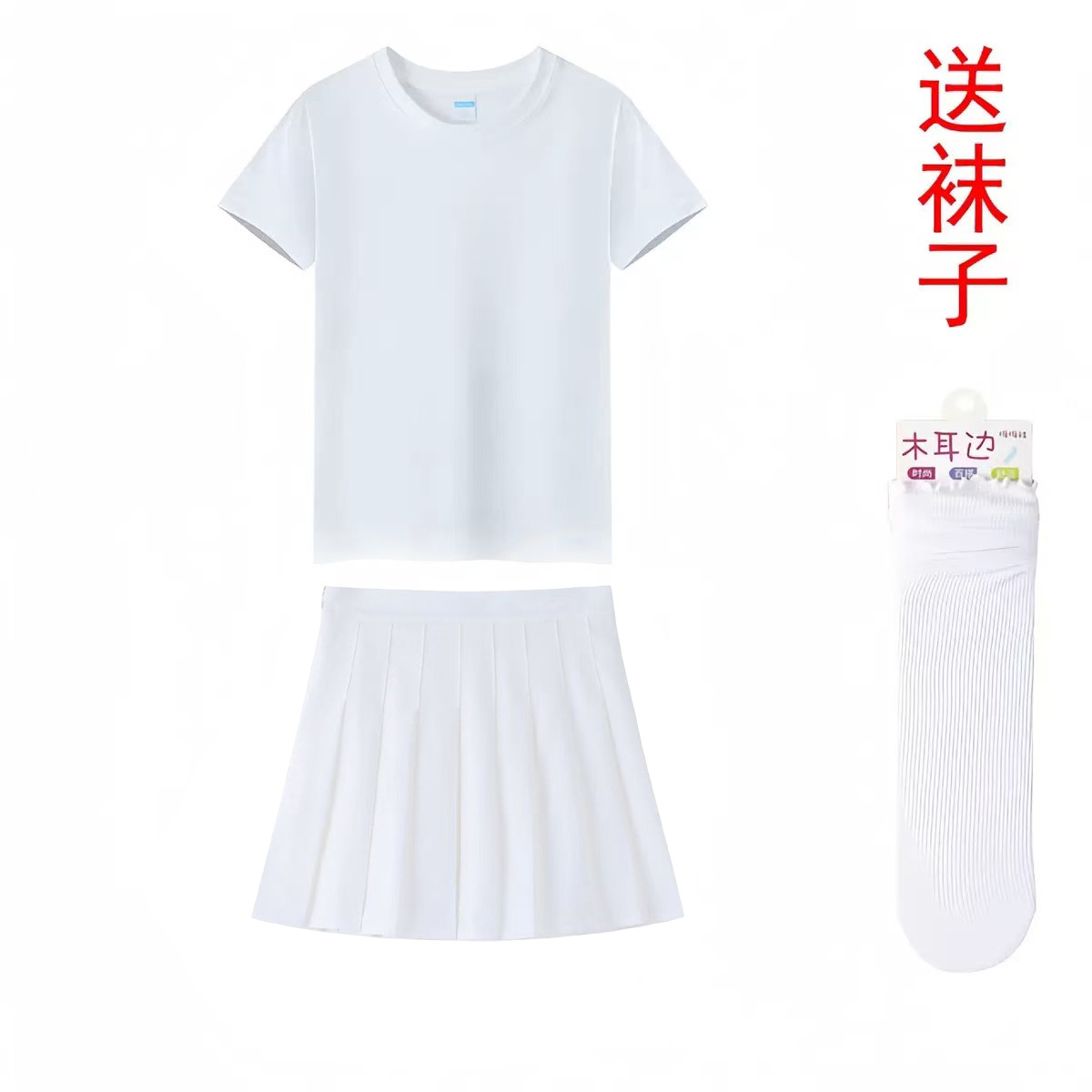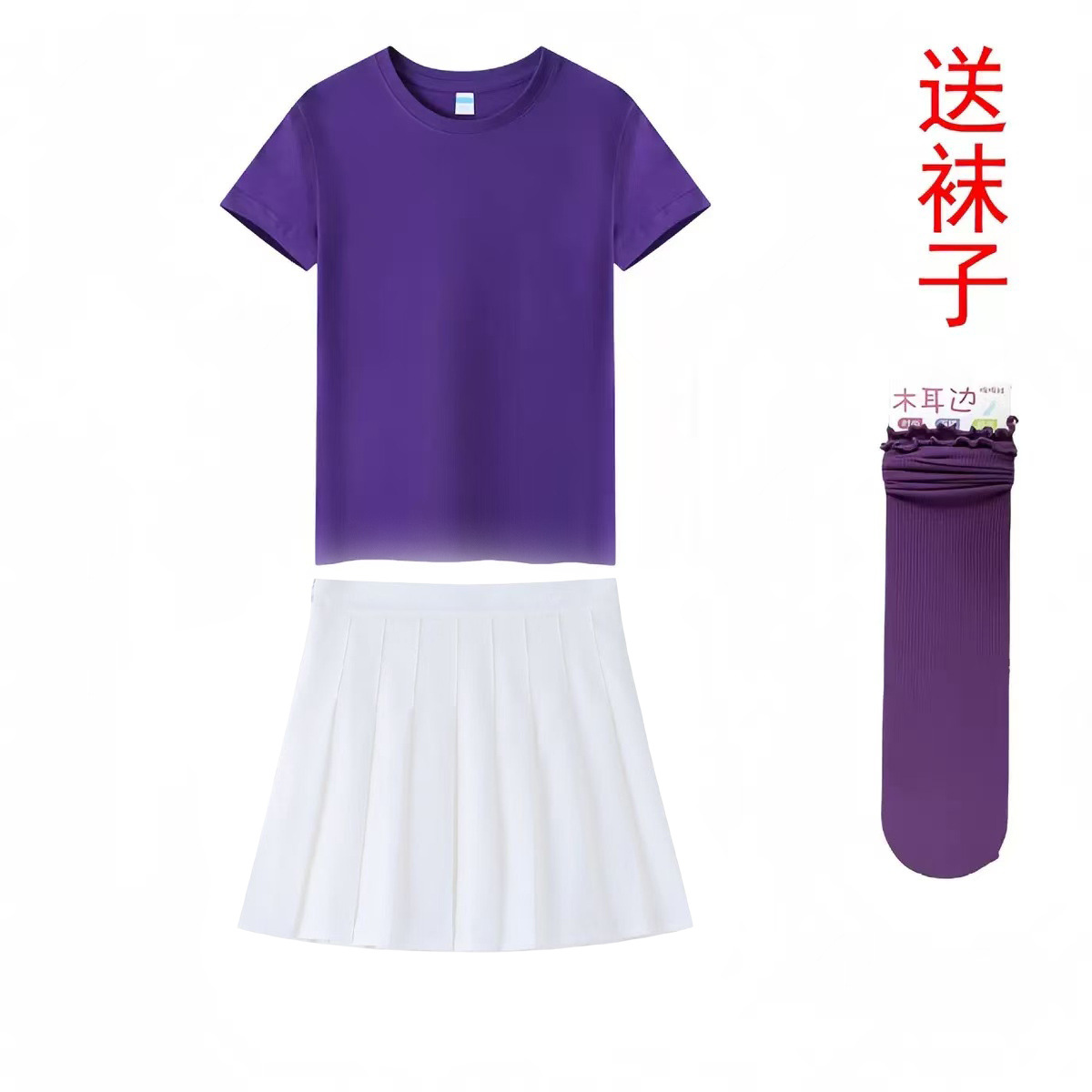 180 캔디 컬러 여성 티셔츠 크루 넥 느슨한 졸업 클래스 소녀 공연 옷 옷 주름 치마 세트