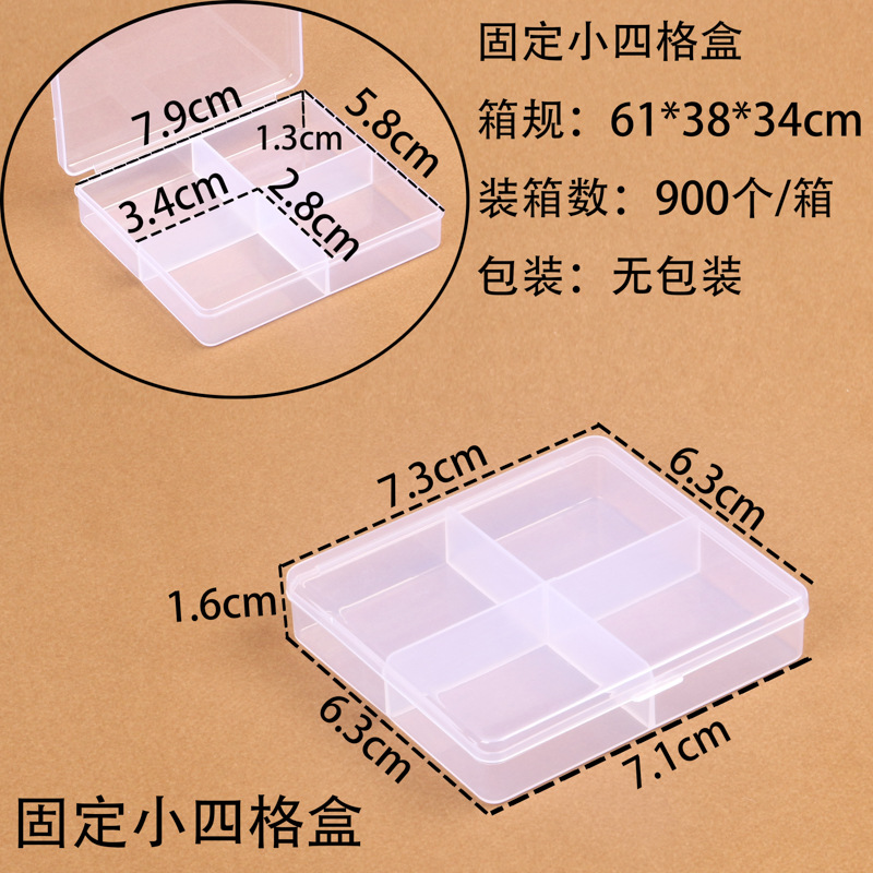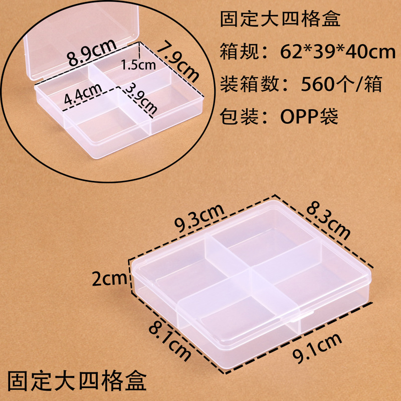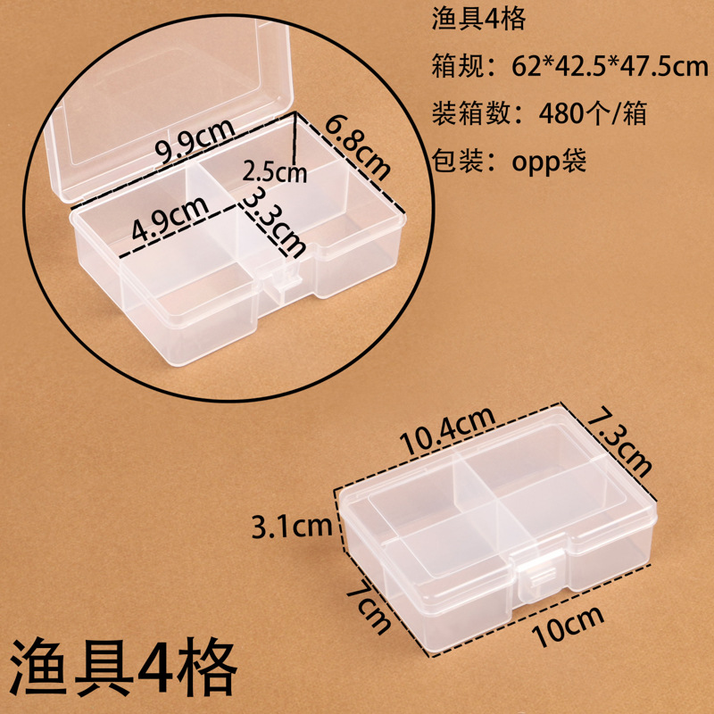 PP 투명 고정 4칸 낚시 장비 액세서리 상자 고무 밴드 종이 클립 포장 상자 보석 구슬 다중 칸 수납 상자