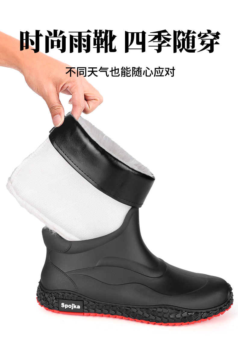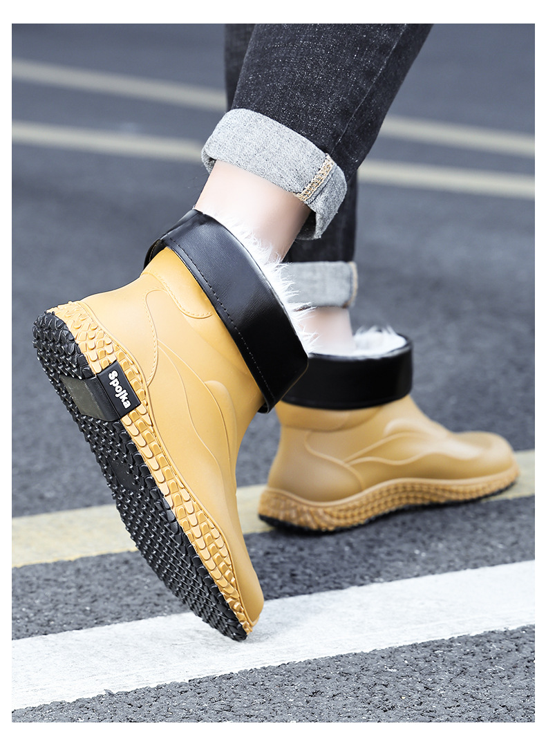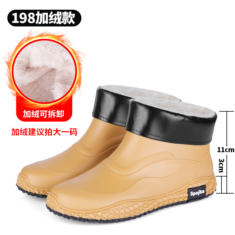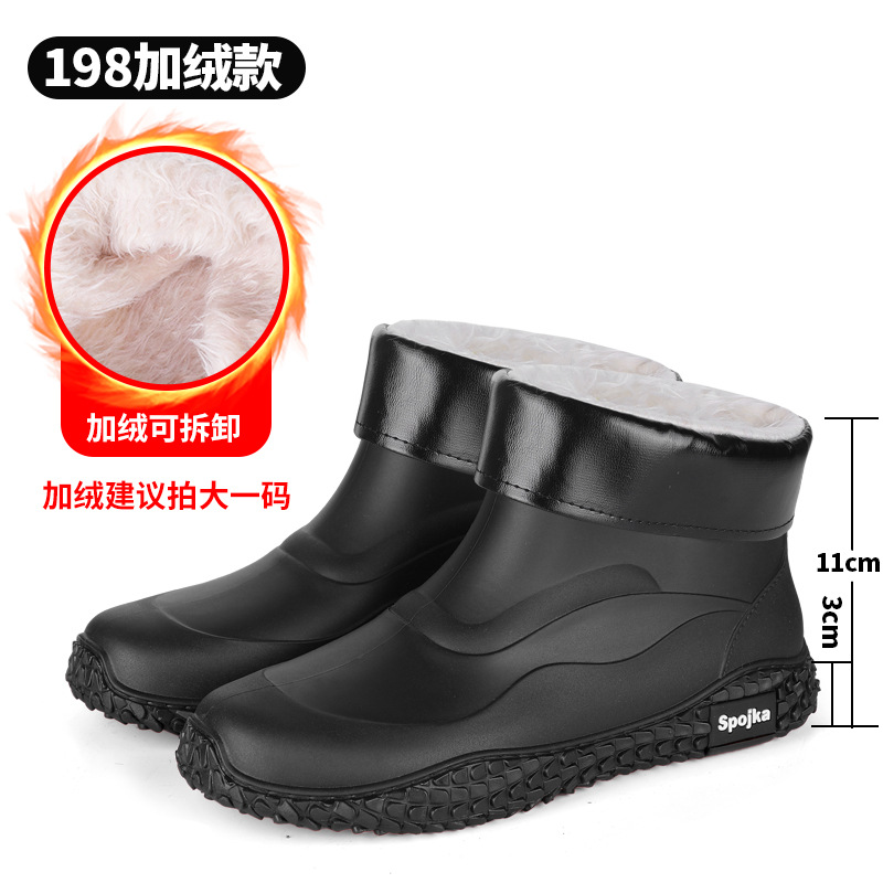 미끄럼 방지 방수 패션 워터 슈즈 고무 신발 남성용 짧은 튜브 주방 내마모성 작업 장화 낚시 장화 기모 워터 부츠