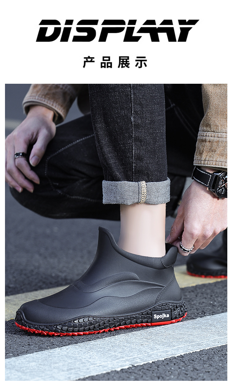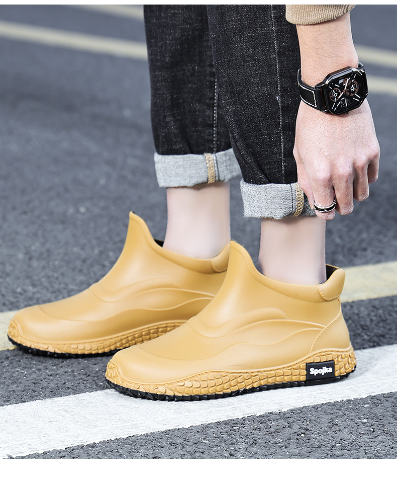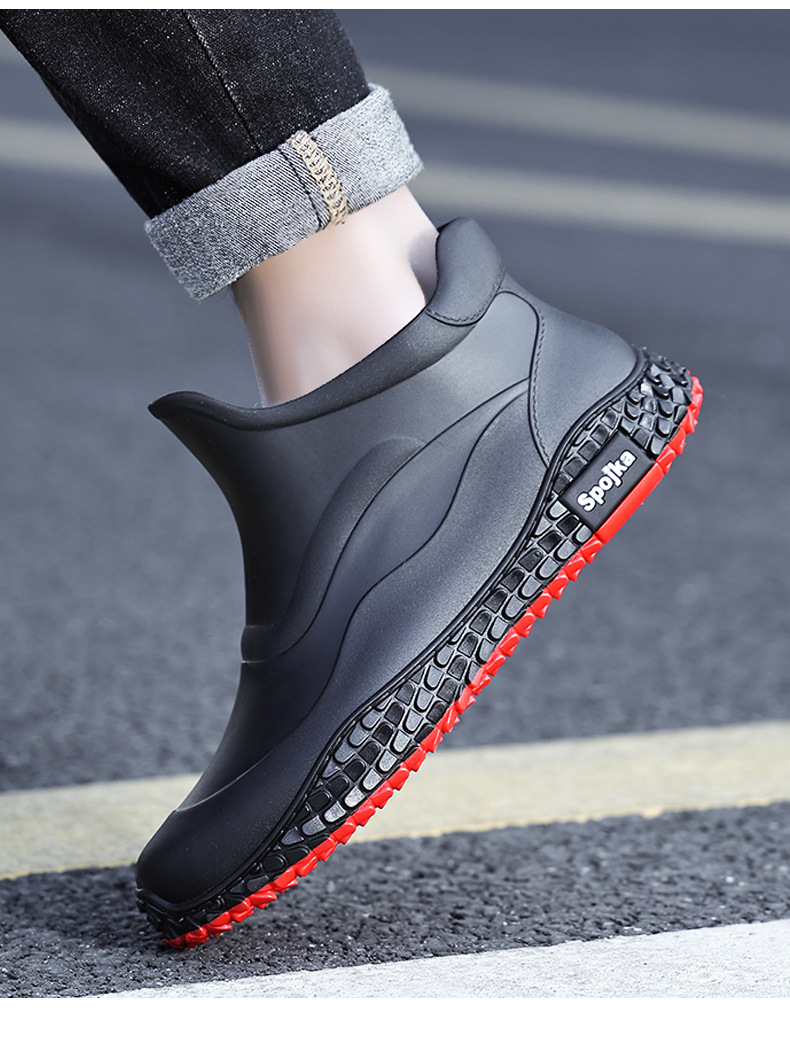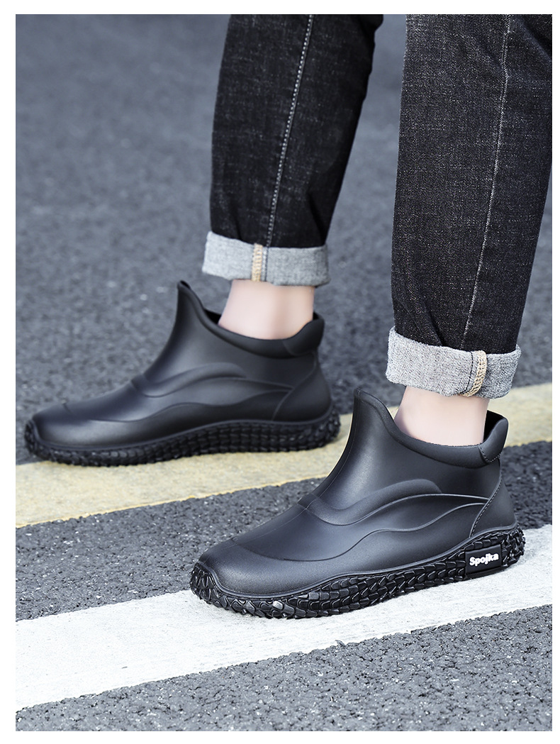 미끄럼 방지 방수 패션 워터 슈즈 고무 신발 남성용 짧은 튜브 주방 내마모성 작업 장화 낚시 장화 기모 워터 부츠스토어 가기