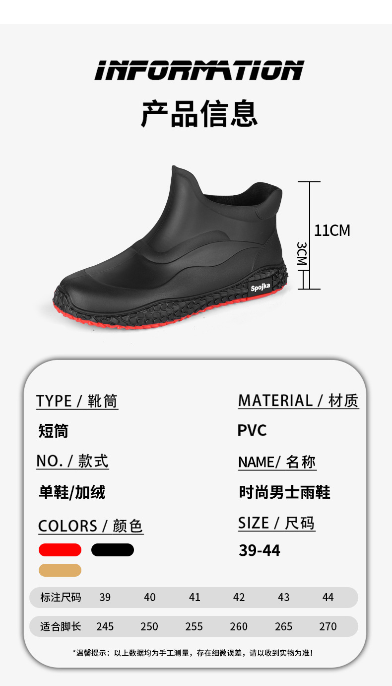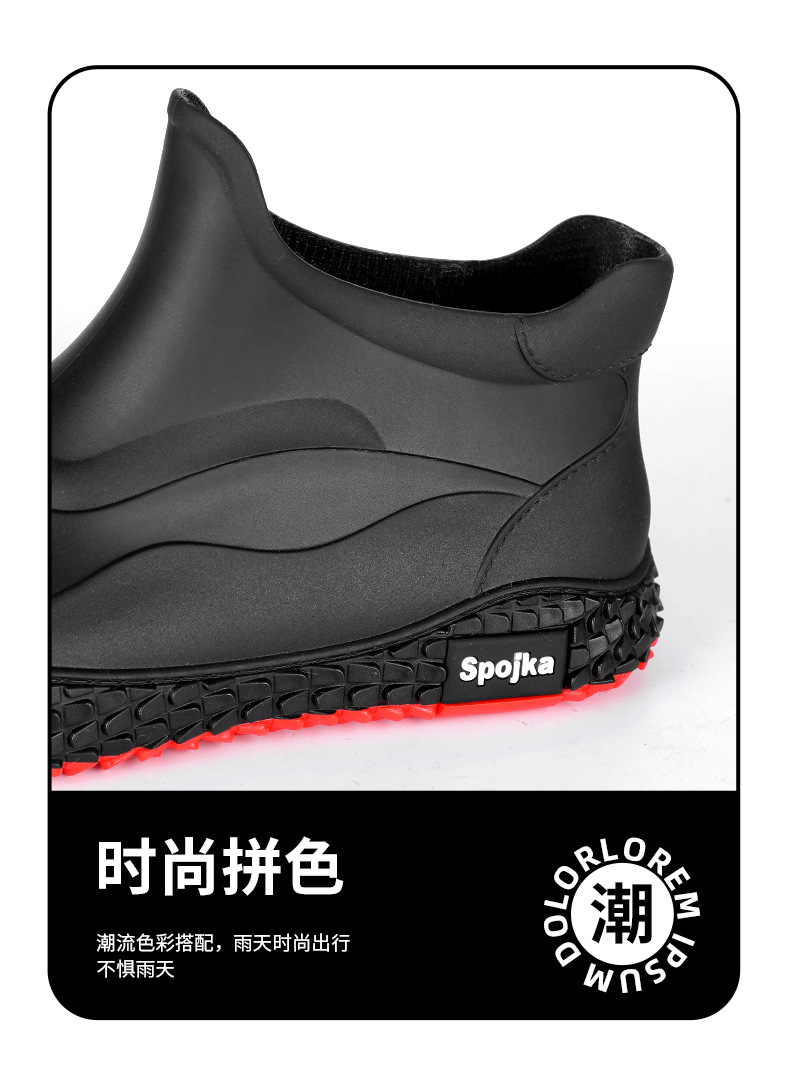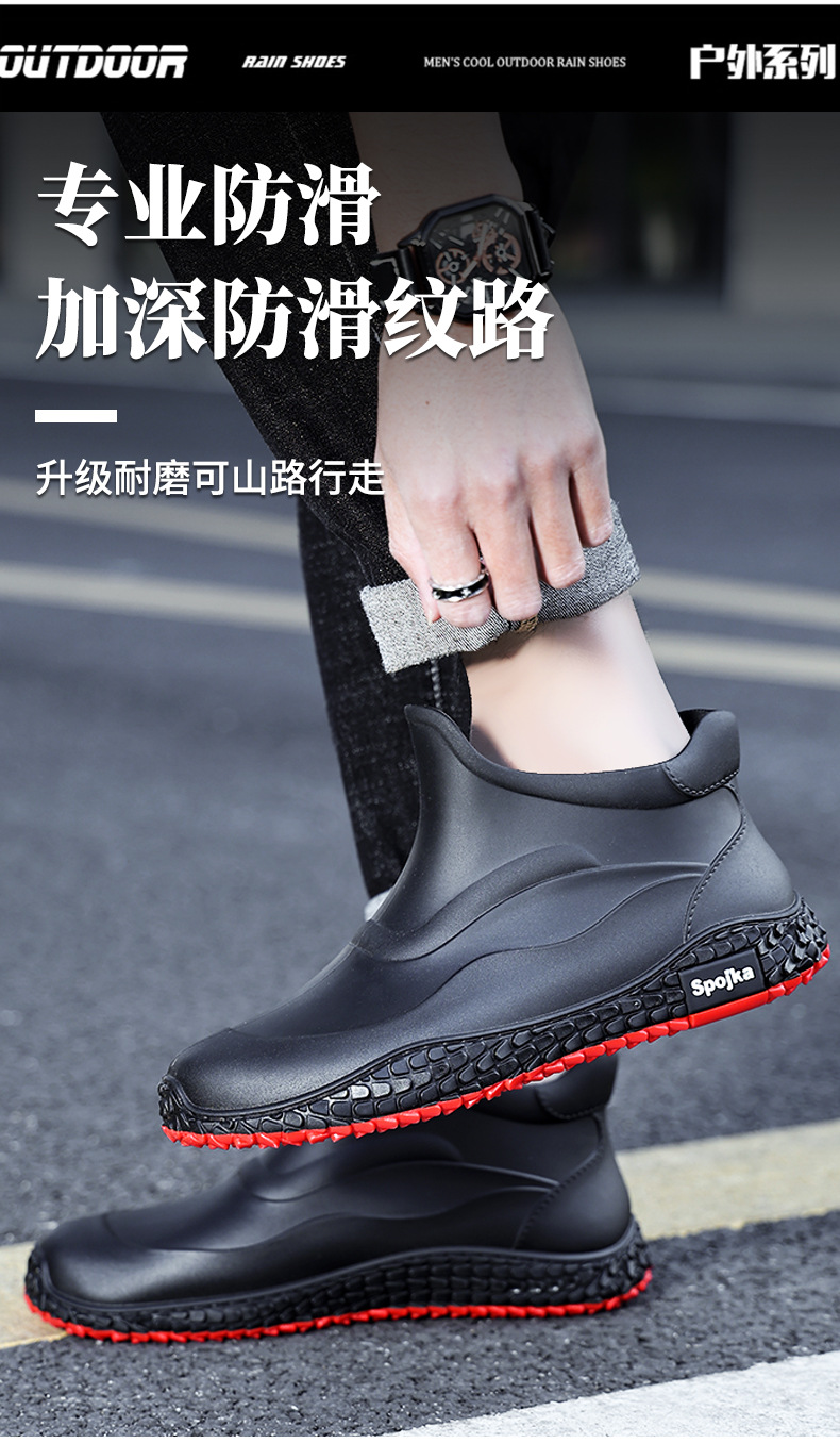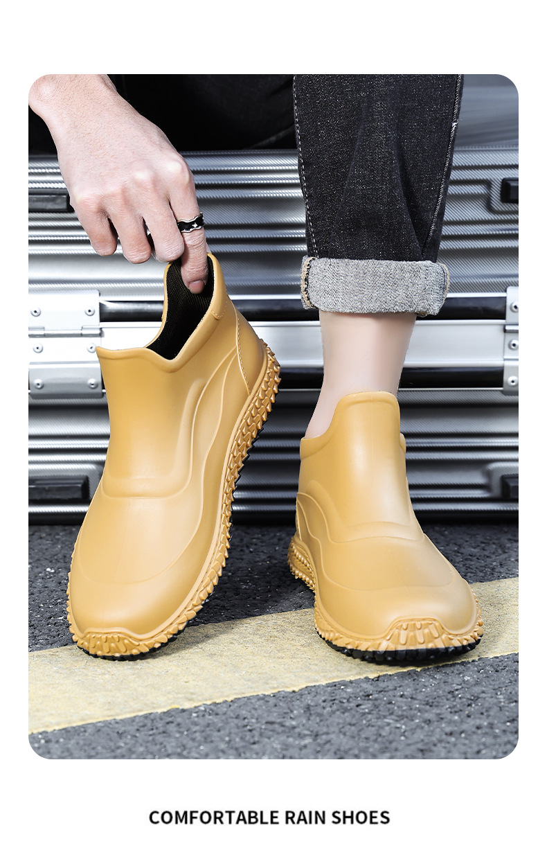 미끄럼 방지 방수 패션 워터 슈즈 고무 신발 남성용 짧은 튜브 주방 내마모성 작업 장화 낚시 장화 기모 워터 부츠스토어 가기