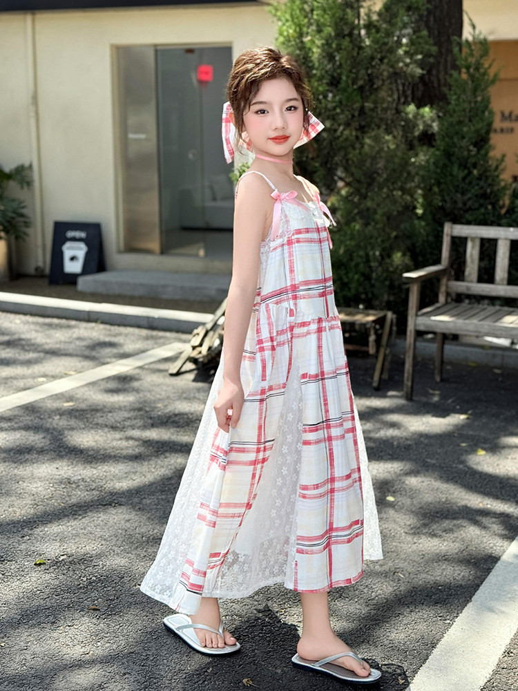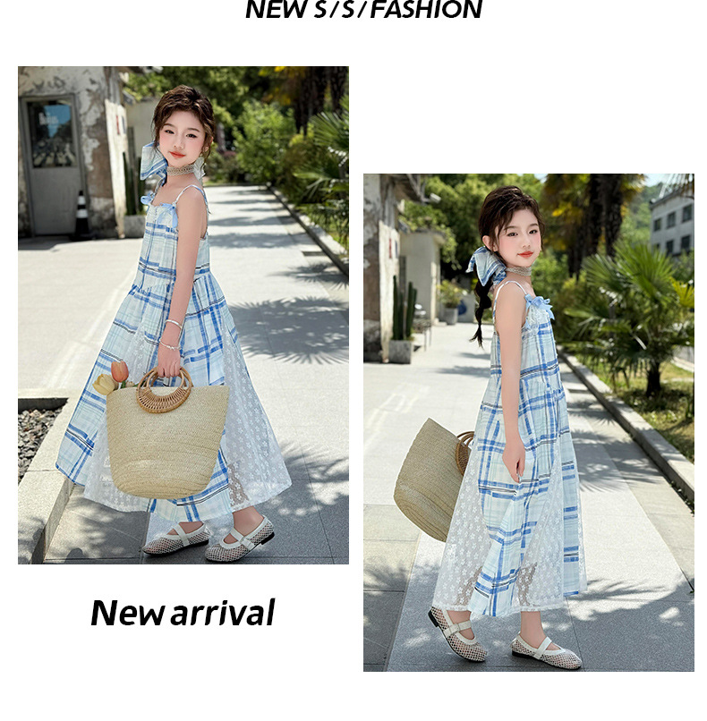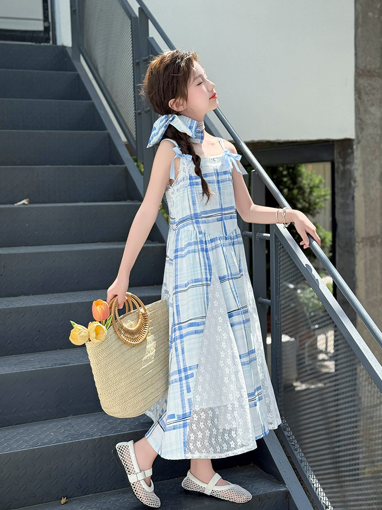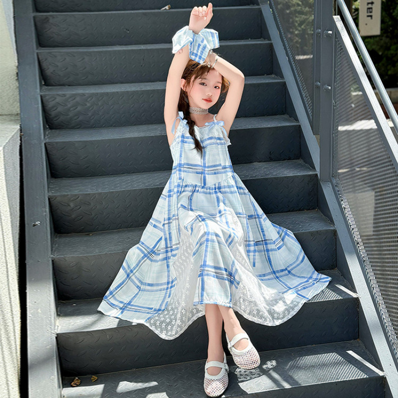 여자 민소매 조끼 드레스 여름 얇은 어린이 큰 옷 인터넷 연예인 거리 소녀 서스펜더 공주 스커트스토어 가기