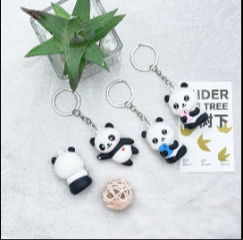 만화 휴대 전화 입체 팬더 키 체인 펜던트 귀여운 팬더 키 체인 인형 기념품 선물 펜던트