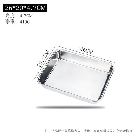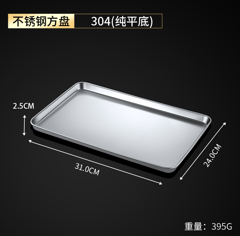 상업용 찜 밥 접시 가정용 철제 접시 직사각형 트레이 스테인레스 스틸 식품 등급 라이트 304 두꺼운 평평한 바닥 사각형 접시스토어 가기
