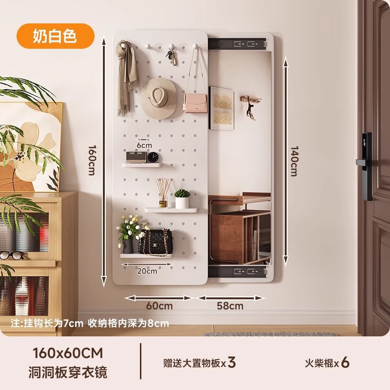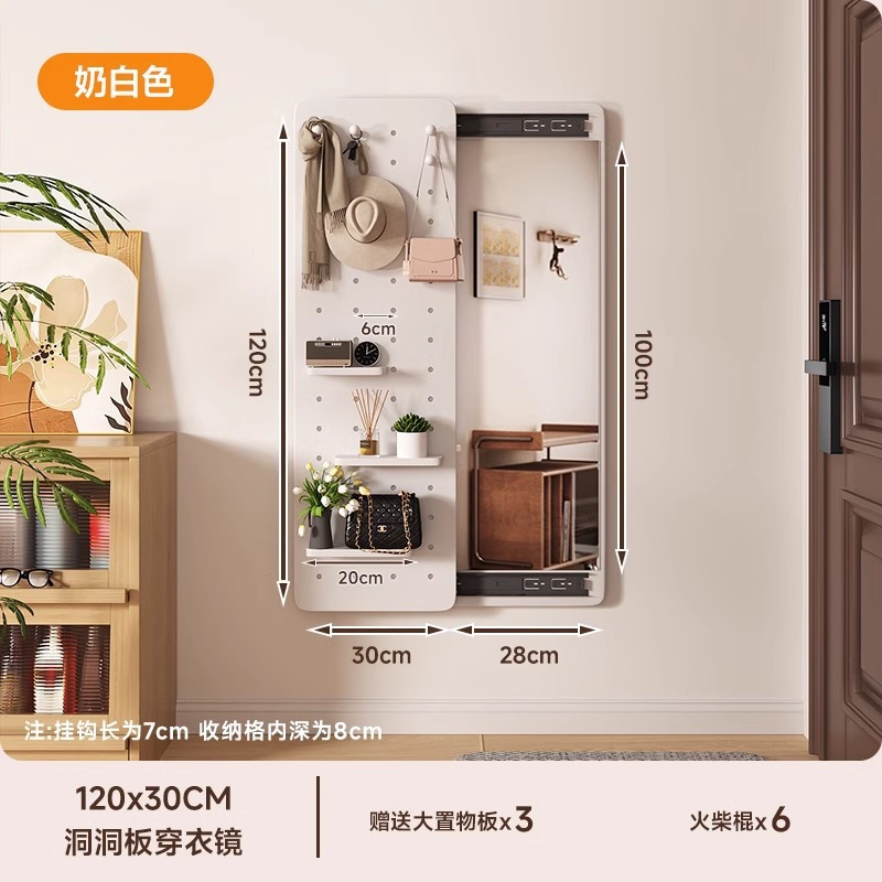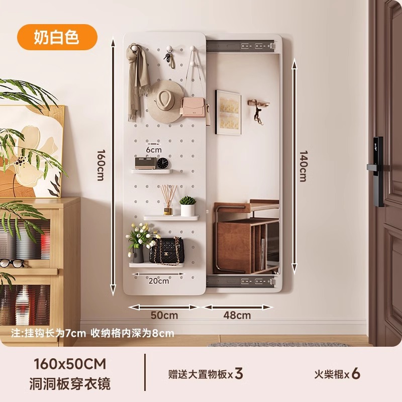 구멍 보드 관통하는 거울 벽 교수형 입구 보이지 않는 폐쇄 형 푸시-풀 솔리드 우드 소재 가정용 전신 피팅 좋은 도움스토어 가기