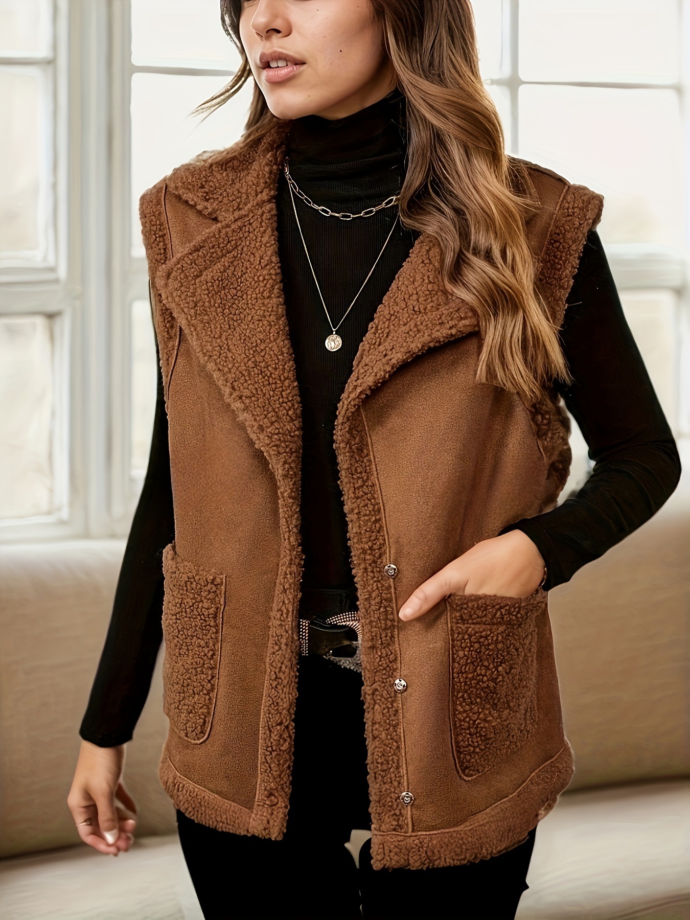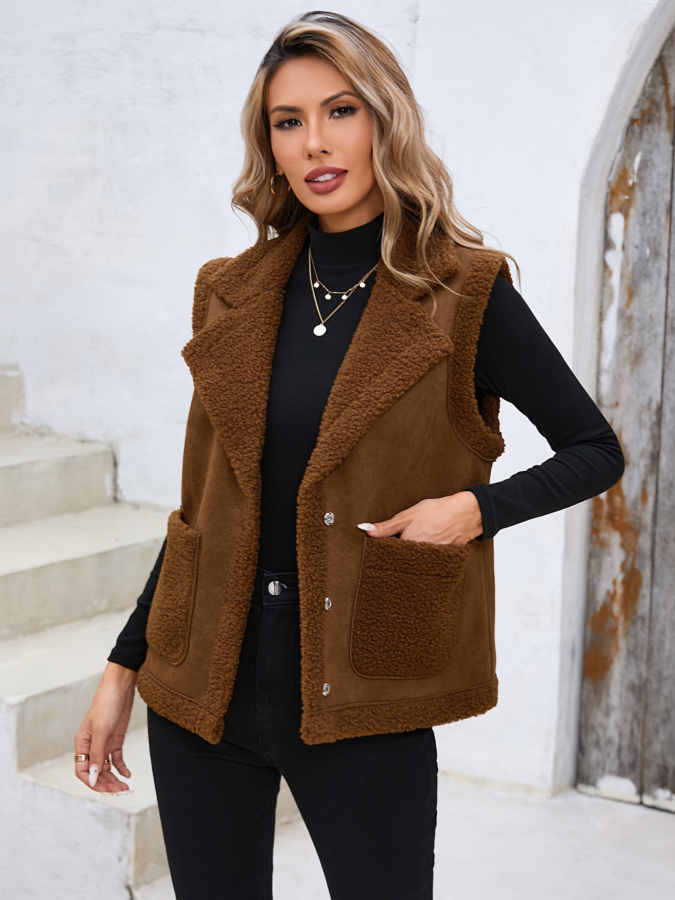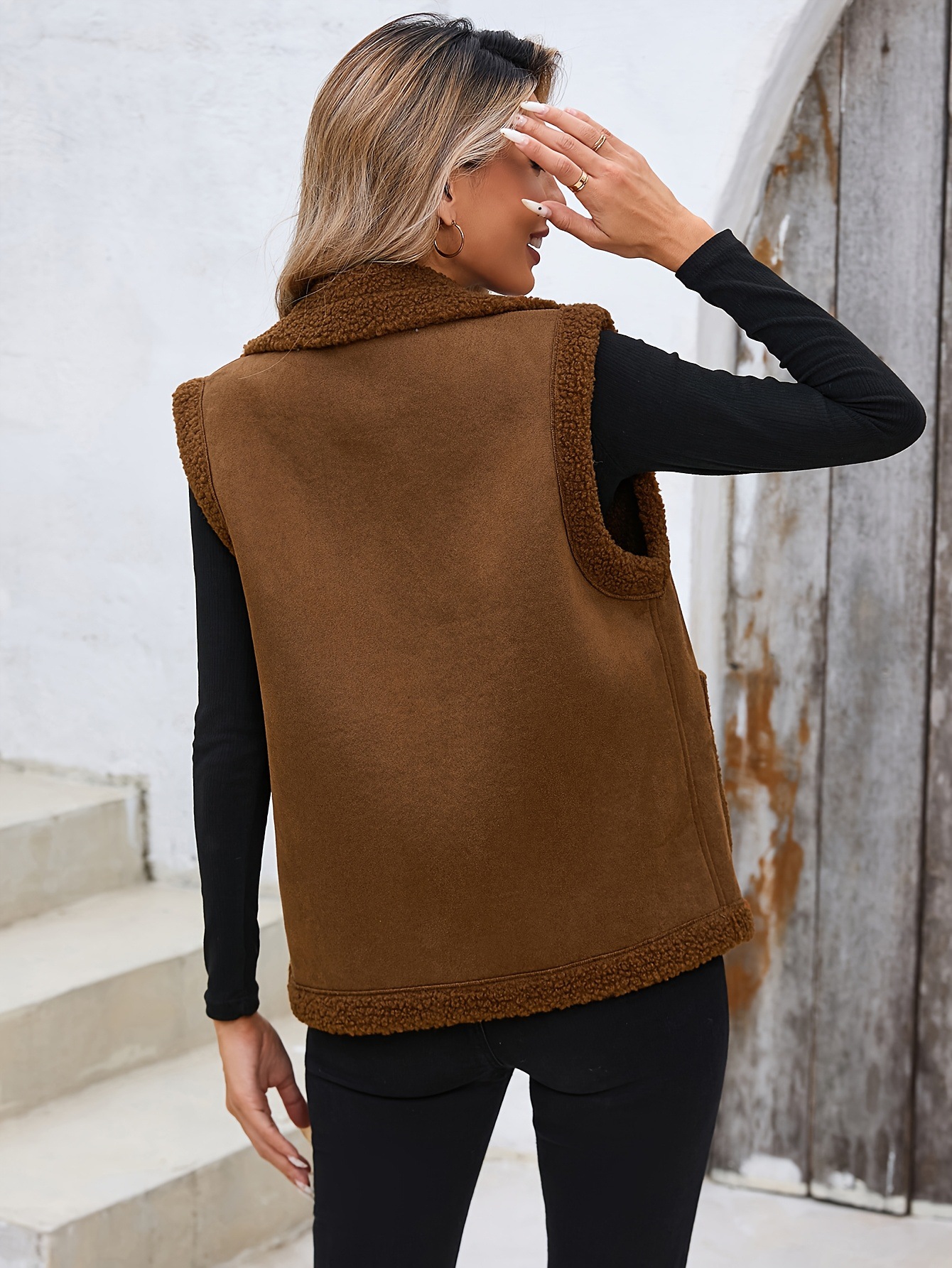 2025 가을 겨울 여성 코듀로이 칼라 스플라이스 스웨이드 조끼 재킷, 사이드 포켓, 캐주얼하고 따뜻함스토어 가기