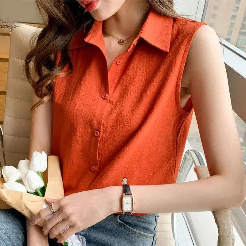셔츠 민소매 여성용 쉬폰 여름 우아한 올 매치 솔리드 컬러 셔츠 루즈 웨스턴 스타일 기본 조끼 톱 2025 새로운 스타일
