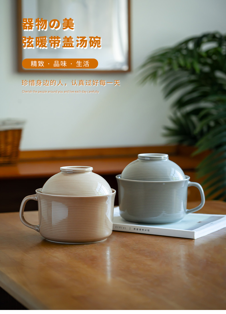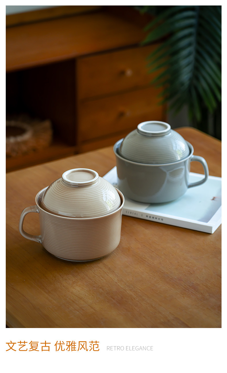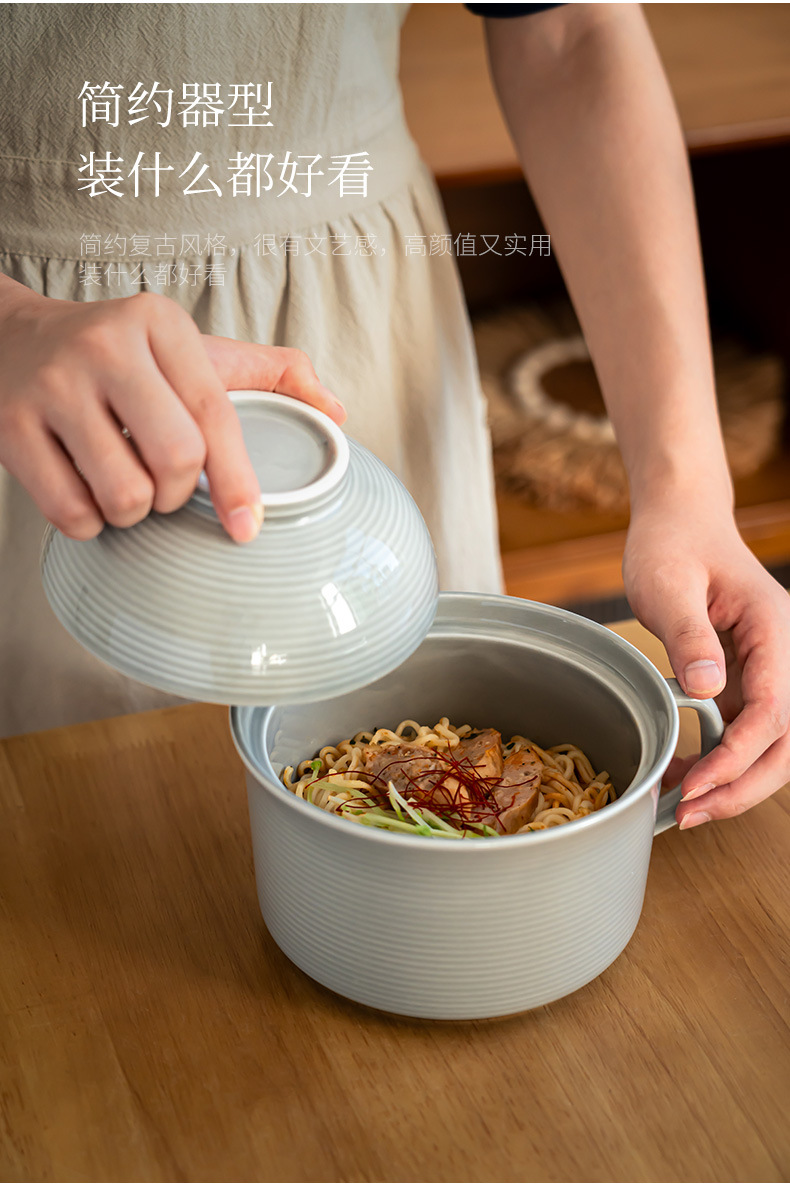 학생용 학생기숙사 밥그릇, 뚜껑이 있는 국그릇, 식기류, 수통 국수그릇, 가정용 세라믹 라면그릇, 편리함스토어 가기