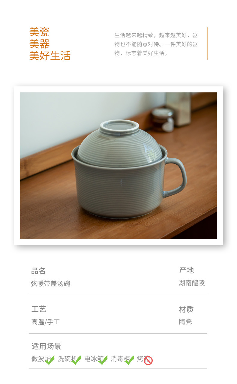 • Xian Nuan-뚜껑이 있는 수프 그릇 회색 6.1inch + 닭 날개 나무 젓가락