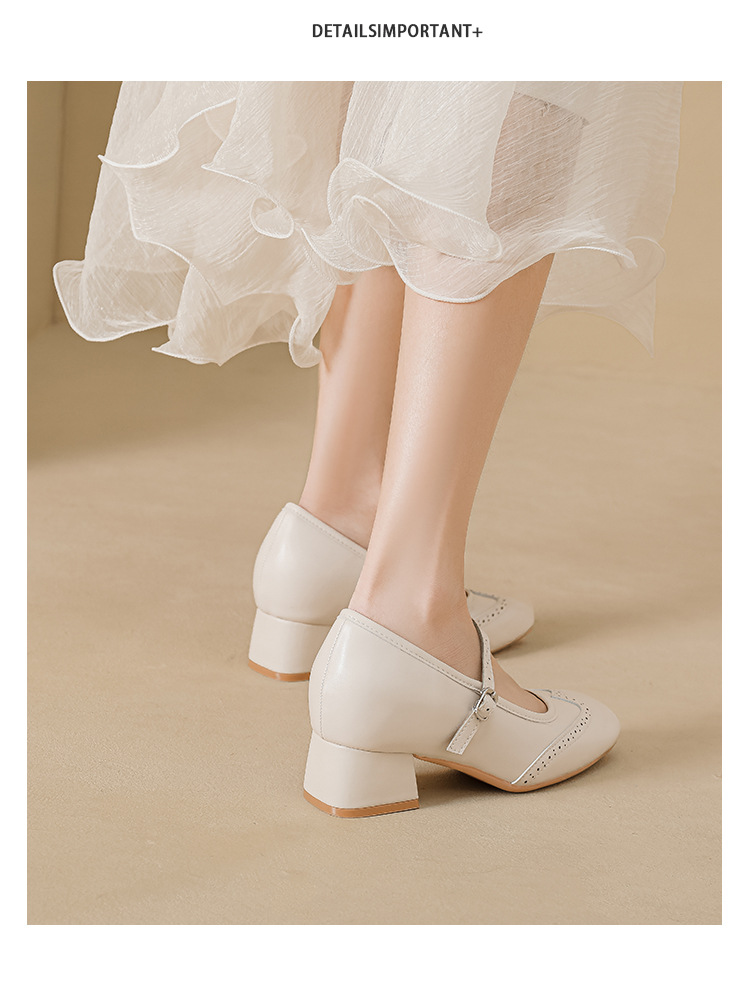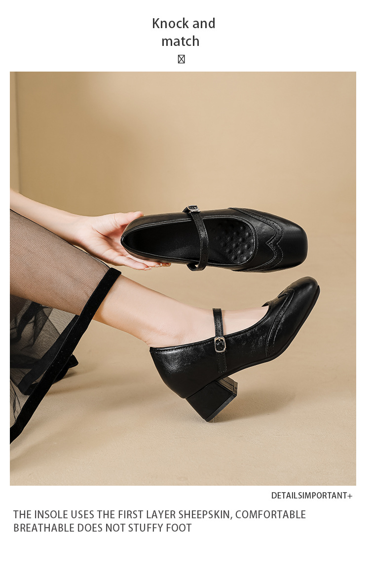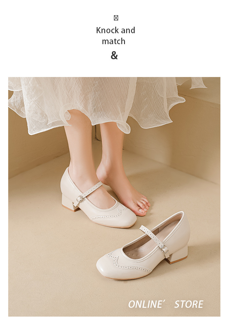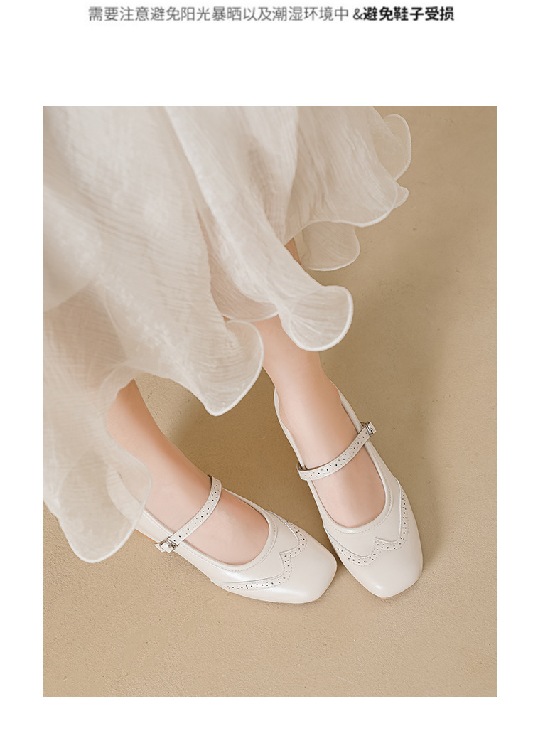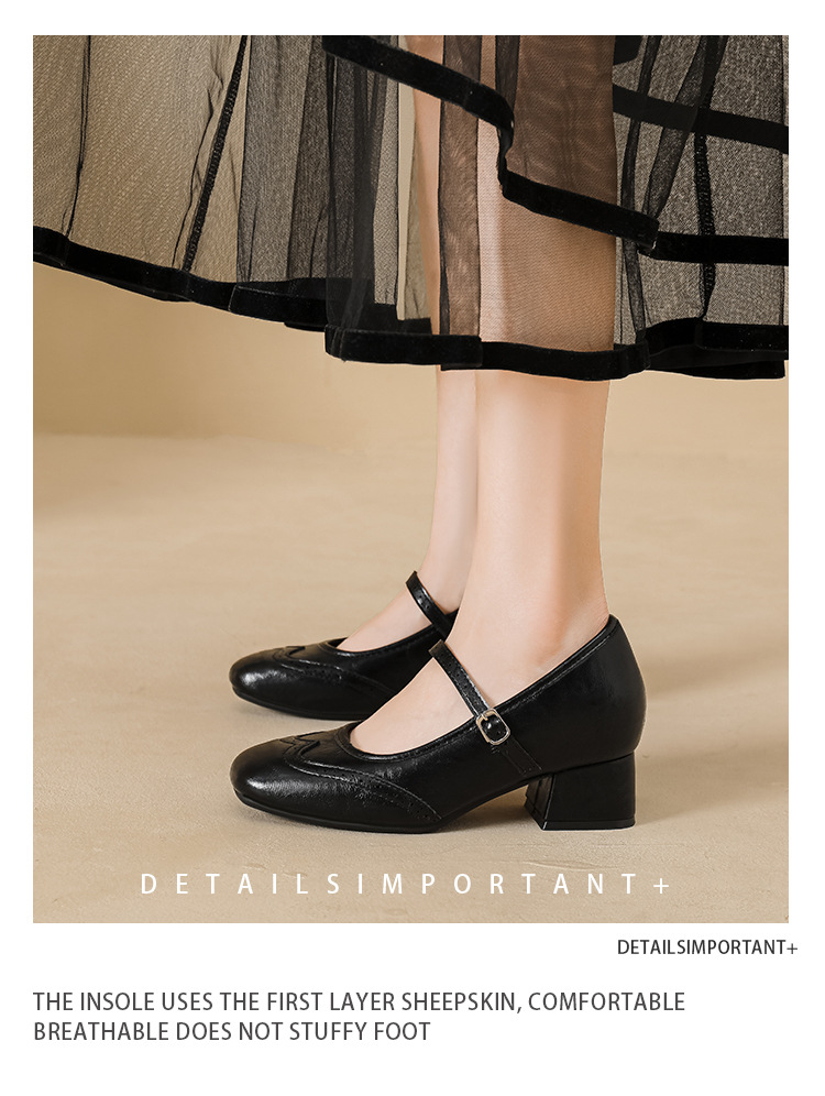 소프트! 프랑스 레트로 메리 제인 신발 플랫 얕은 입 싱글 신발 여성의 2025 새로운 조각 브록 꽃 작은 가죽 신발스토어 가기