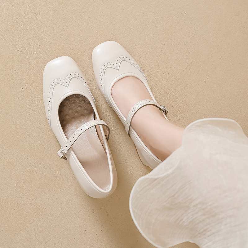 소프트! 프랑스 레트로 메리 제인 신발 플랫 얕은 입 싱글 신발 여성의 2025 새로운 조각 브록 꽃 작은 가죽 신발