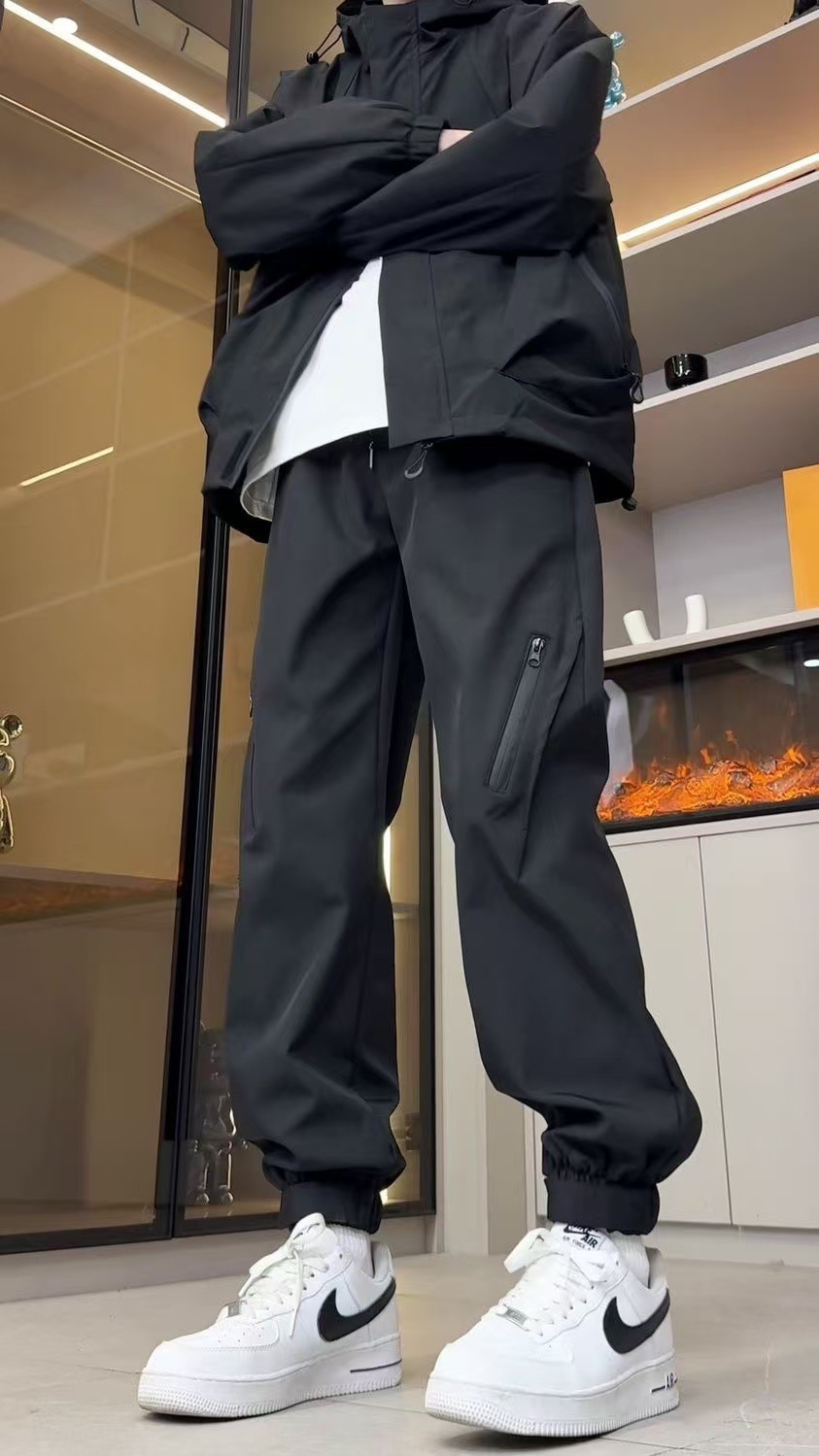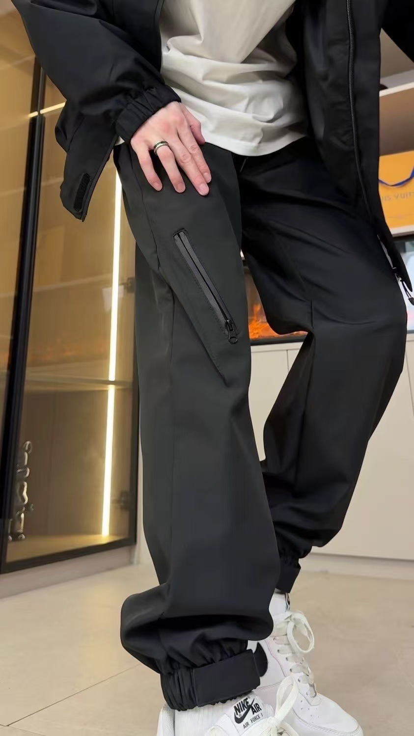 • X48 블랙 스트레이트 방수팬츠
