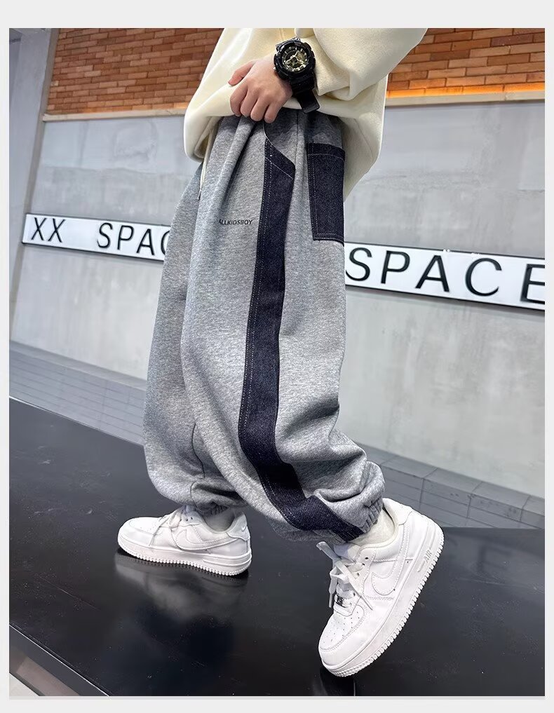 남아용 봄 바지 2025 새로운 유행 아동 스포츠 바지 봄, 가을 스타일 중대형 아동 캐주얼 스웨트 팬츠 봄 잘 생긴스토어 가기