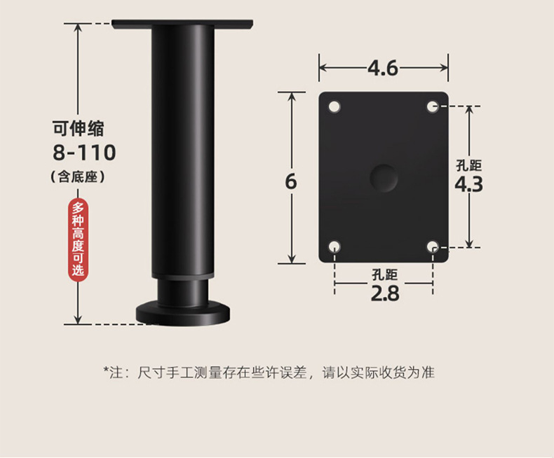 • 검정색 조절 가능 [높이 18-30cm] 대형 베이스 모델, 산업용 금속 모델, 더욱 안정적